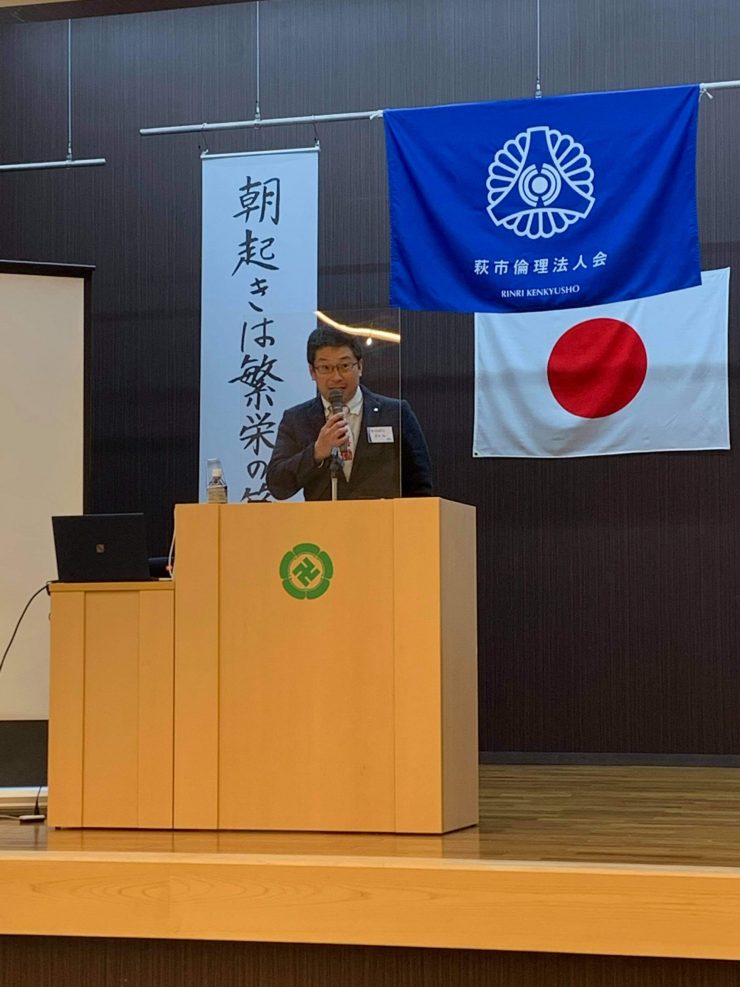 本日は萩市倫理法人会副会長 田中裕一さんの「こんにちは!豊葦原の瑞穂の国」というテーマで古事記、日本書紀に記された神話や物語を通して、現代に生きる私たちにも通ずる必要な考え方や心の持ち方をわかり易くお伝えして頂きました。特に印象に残ったのが、天照大神(アマテラスオオミカミ)の岩戸隠れの物語で、今まさに渦中にあるコロナ時代とそれが強く重なりました。降り止まない雨がないように、明けない夜がないように必ずいつか岩戸は開く。日本神話を通して、古来より日本人が大切にしてきた言霊や考え方を教えて頂き、「今、我々にできることは一体何なのか?」目に見えない世界から目に映る世界を創る。