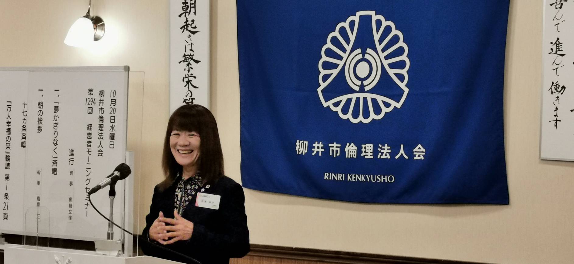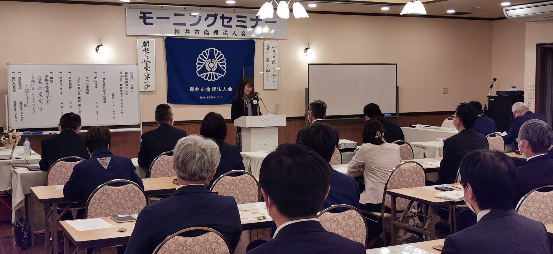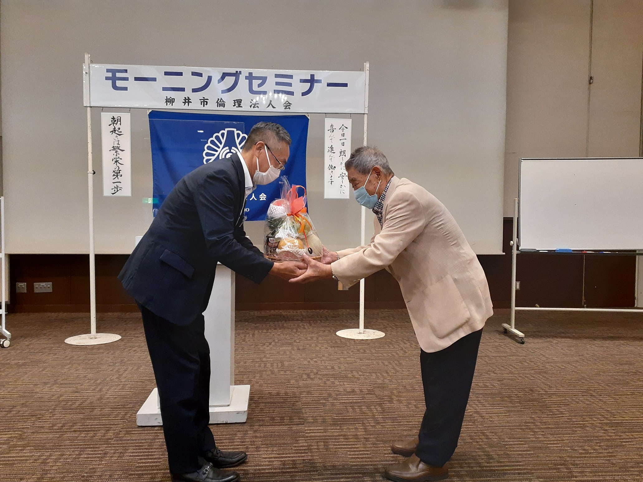 10月12日第1338回柳井市経営者モーニングセミナーは講師に一般財団法人 やない花のまちづくり振興財団事務局 沖本 秀司 氏にお越しいただき、「やまぐちフラワーランドってどんなところ?」をテーマにお話しいただきました。