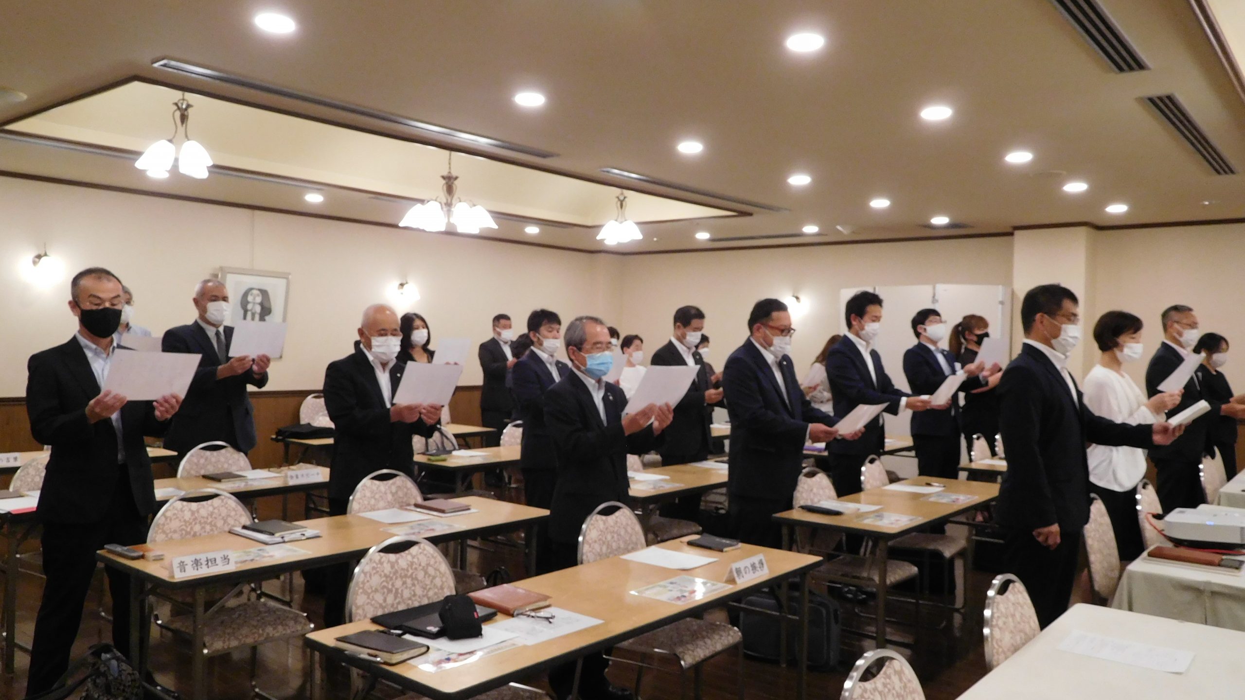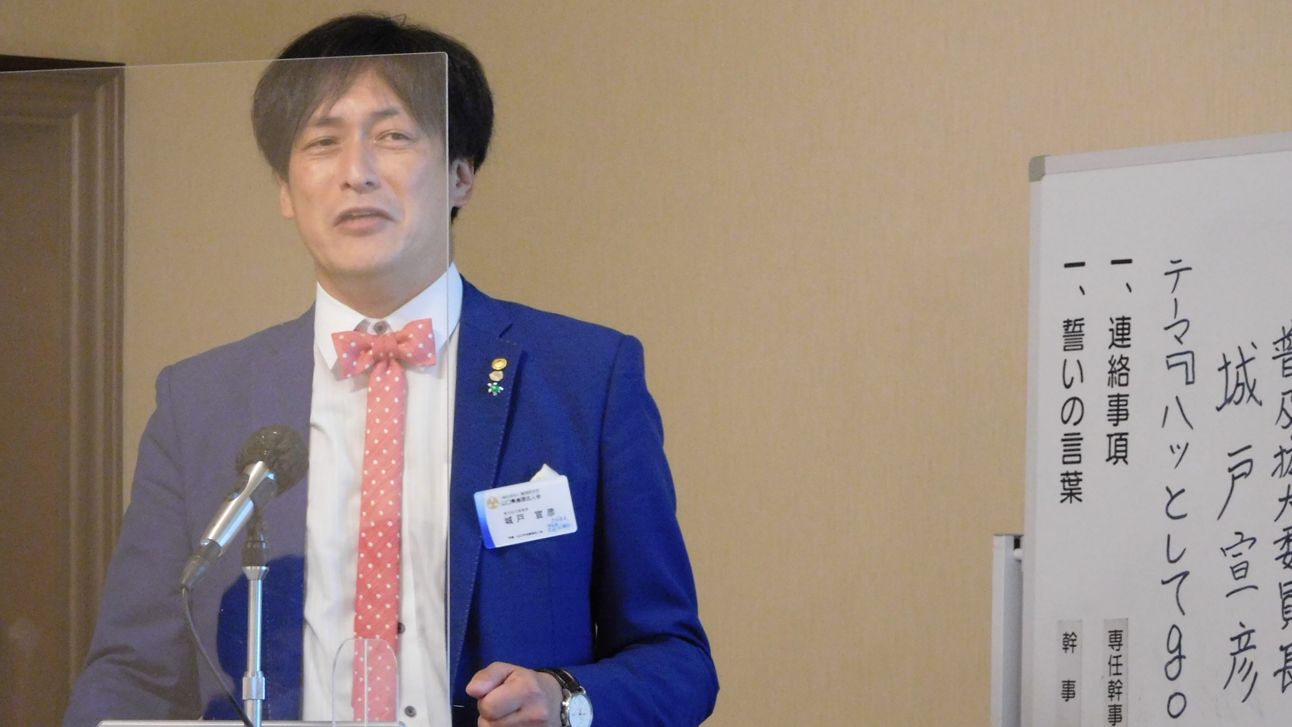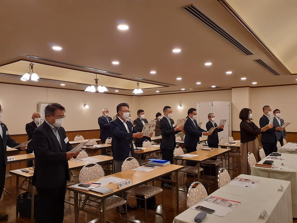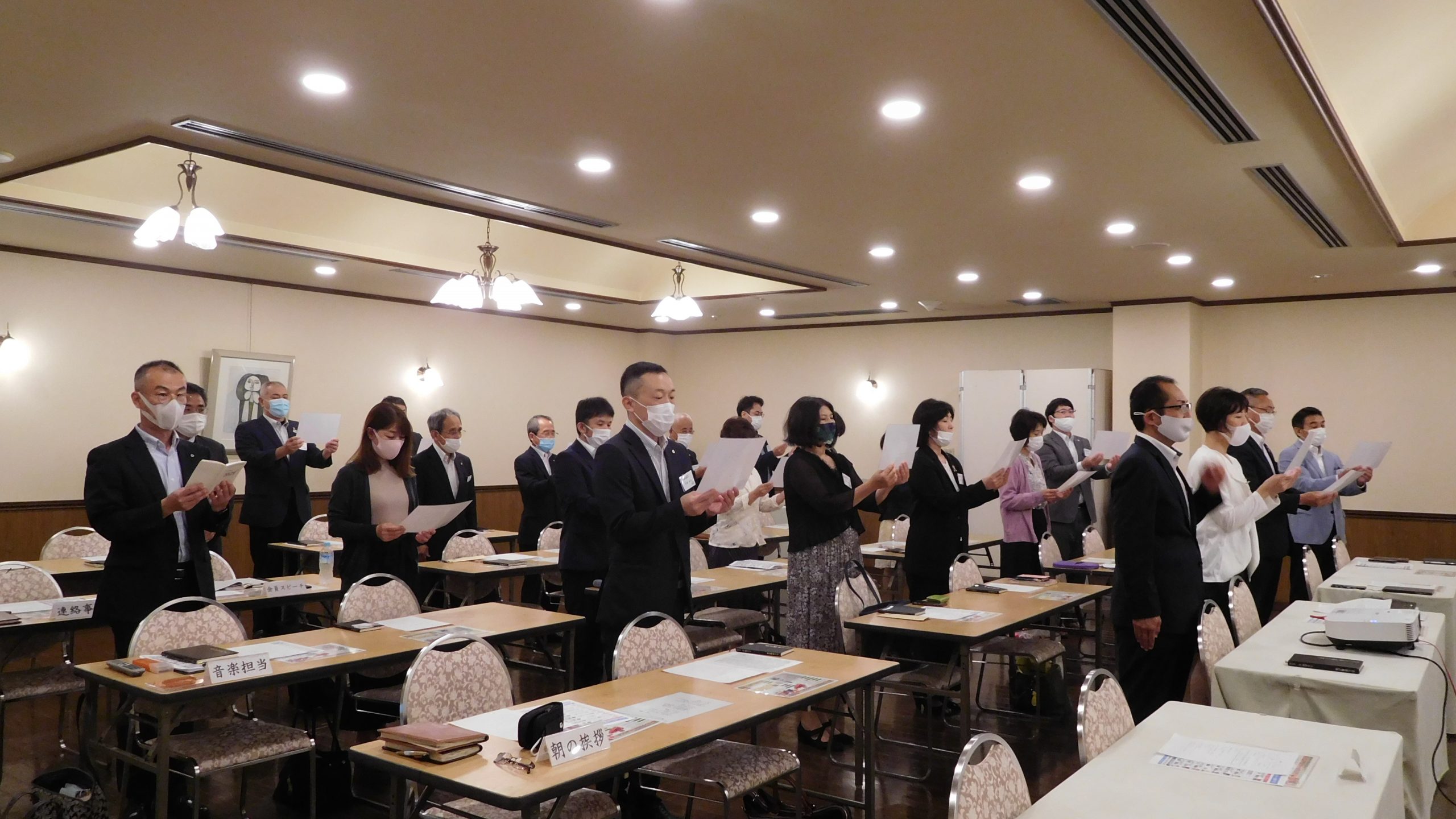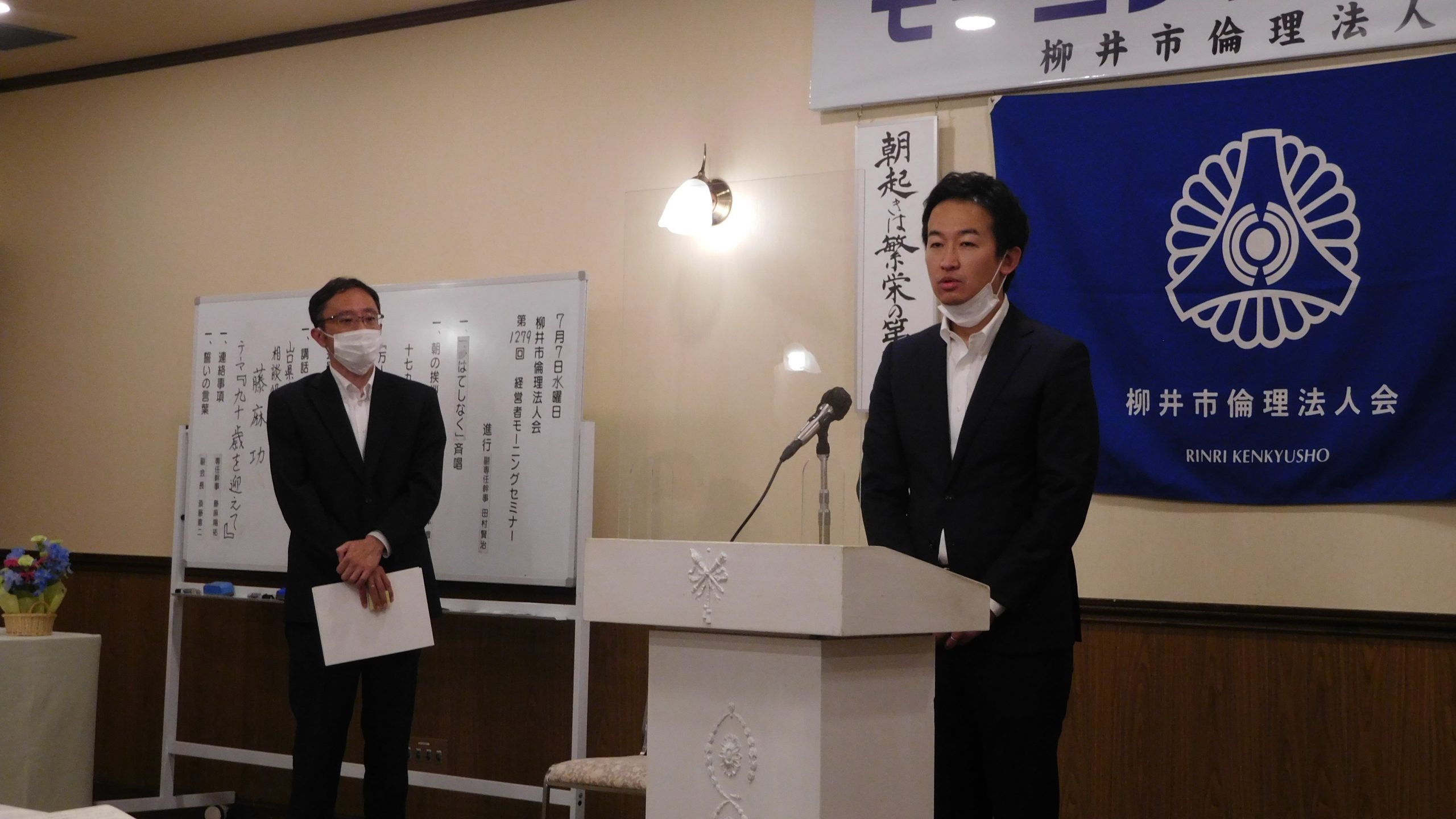 会員スピーチは尾崎 文彦 幹事(有限会社 むつみ 代表取締役)コロナ禍で売上が半減した中で、倫友からの情報やアドバイスがとても役にたった事をお話いただきました。倫理の素晴らしさを再認識したスピーチでした。