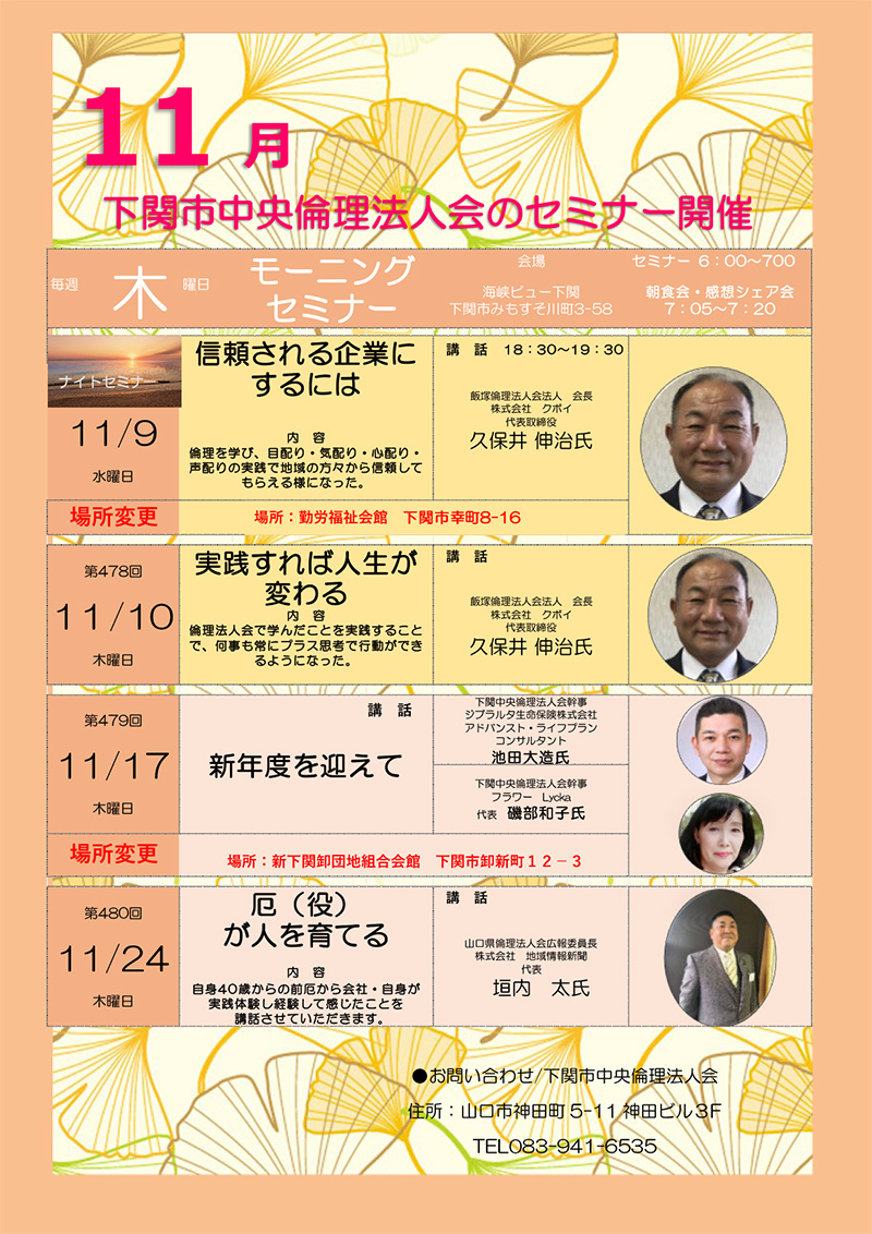 【変更あり】11月モーニングセミナー予定表
