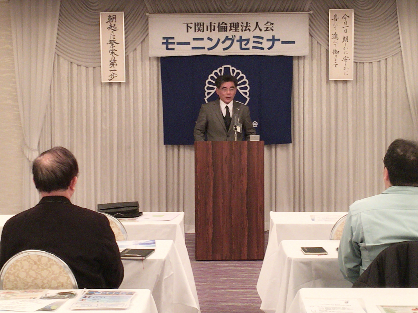 本日の講話は、下関市倫理法人会の幹事である田中克氏。