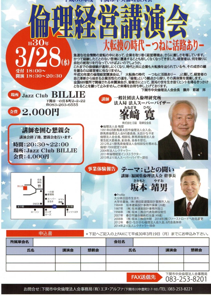 2018年3月28日(水)倫理経営講演会を開催致します。