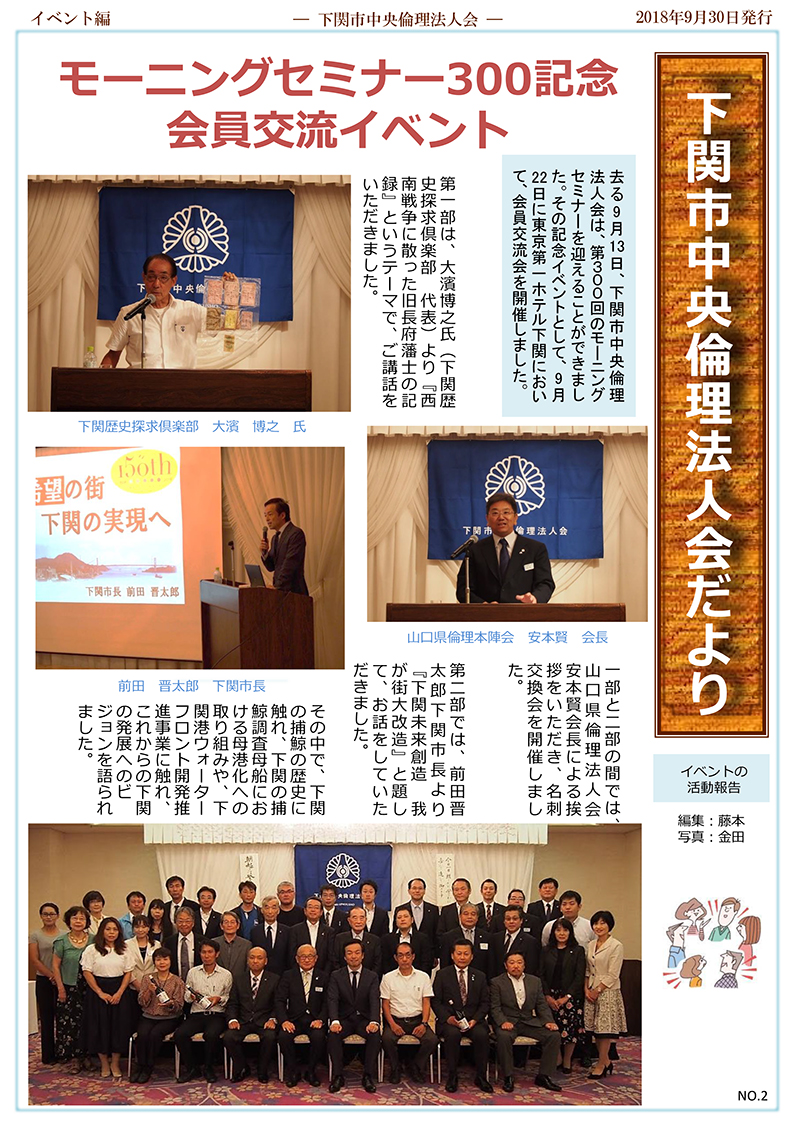 下関市中央倫理法人会だより 〜モーニングセミナー300記念 会員交流イベントの活動報告〜