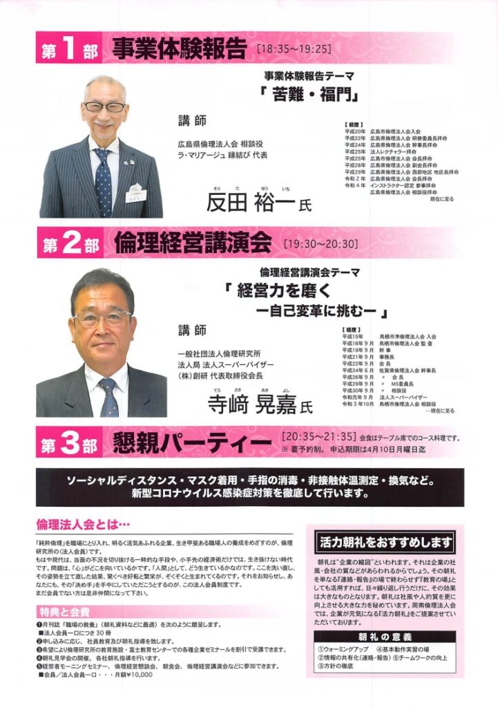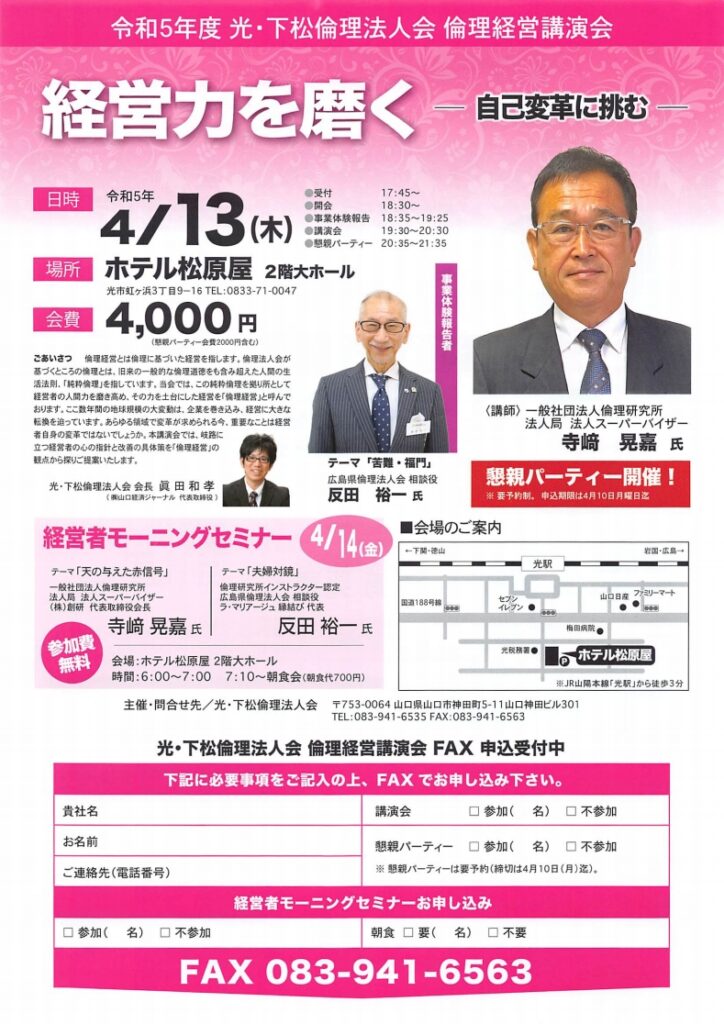 倫理経営講演会 講師:(一社)倫理研究所 法人局 法人スーパーバイザー 寺崎 晃嘉 氏 テーマ:経営力を磨く~自己変革に挑む~