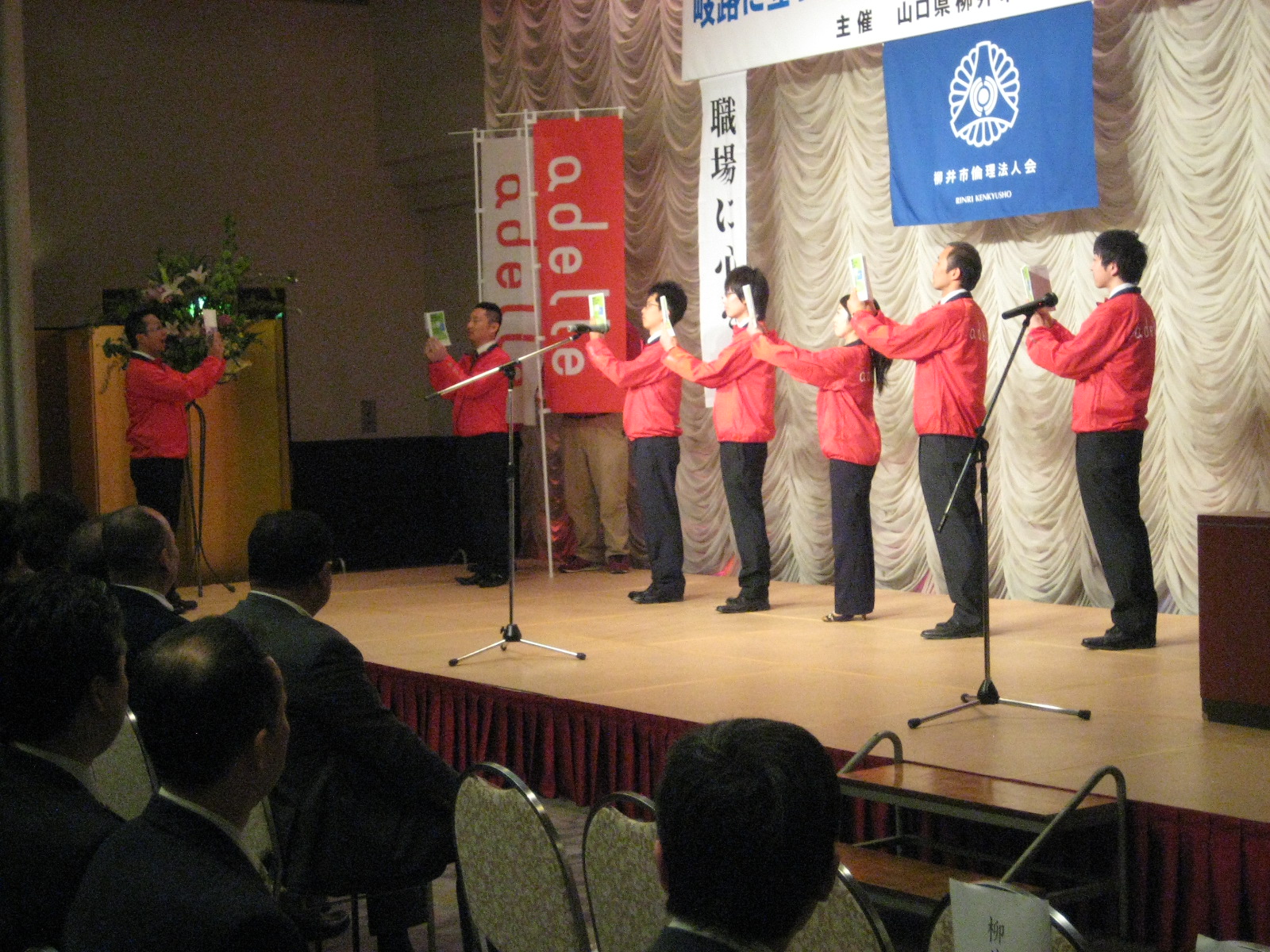 内容としては、3月12日に行われた山口県倫理法人会の朝礼コンテストで優勝いたしました