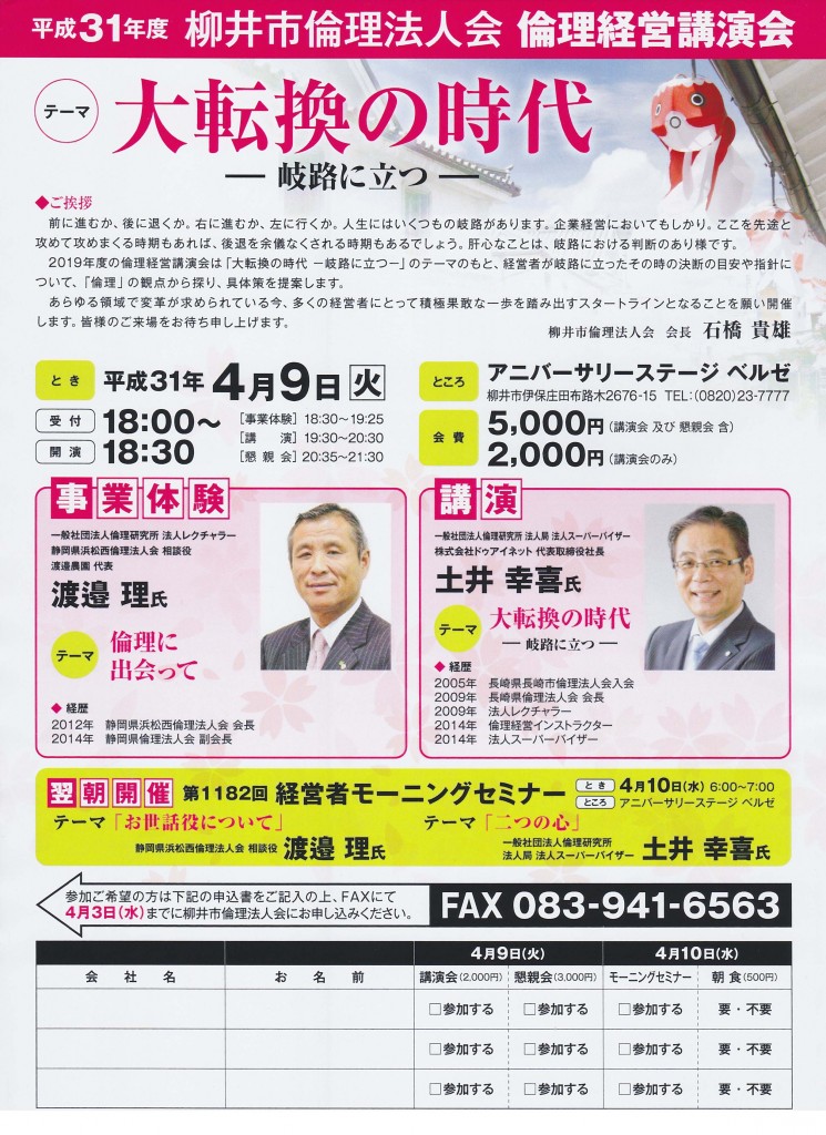 平成31年度 柳井市倫理法人会 倫理経営講演会