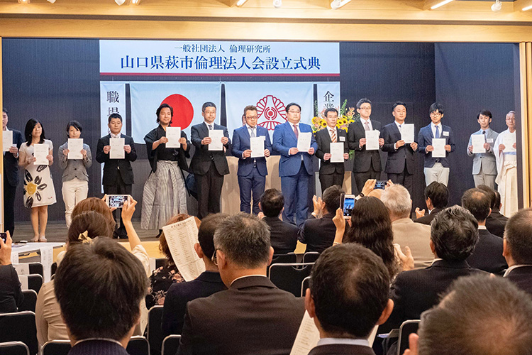 こうして設立の日を迎える事ができましたのも、ご賛同いただいた萩市、長門市の新しい会員企業の皆様、応援していただいた宇部市倫理法人会、そして山口県倫理法人会の方々のお力添えの賜物であると感謝しております。