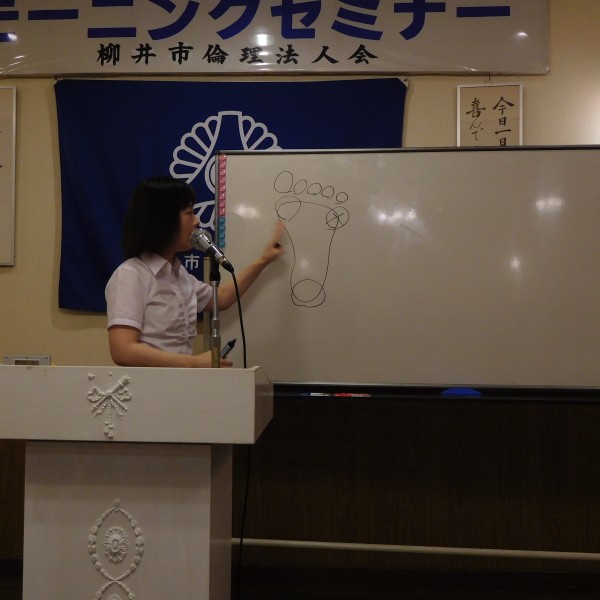 「7月8日の柳井市倫理法人会第1002回経営者モーニングセミナーは、足育いいあんよ  山下かずさ代表 の講話を聴きました(足育は「そくいく」と読みます)。