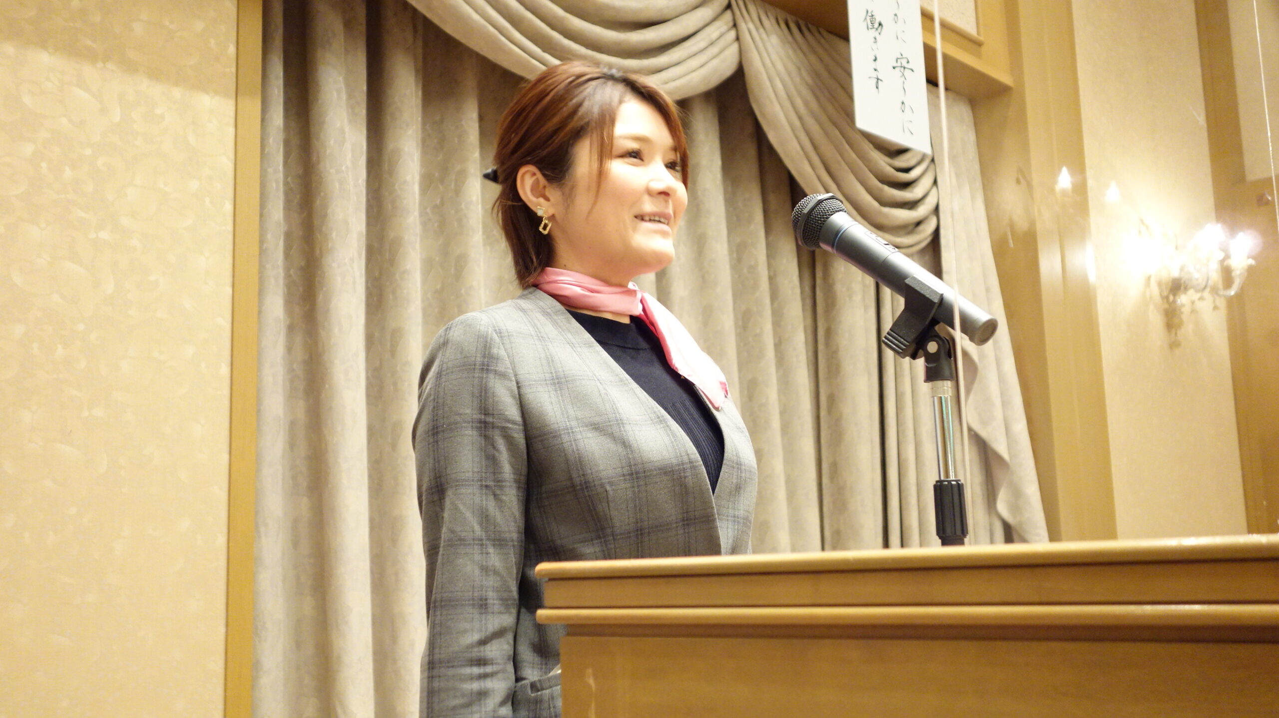 当会の福島運営委員と同級生で、多彩なスポーツ歴、ご主人との馴れ初め、倫理法人会で大切な夫婦仲の良さなどをアピールされました。