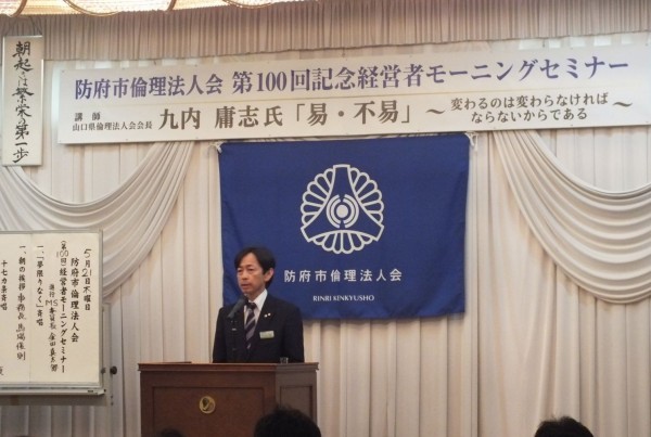 2015年5月21日(木) 第100回記念MS 講師:山口県倫理法人会 会長 九内 庸志 氏 テーマ:易・不易