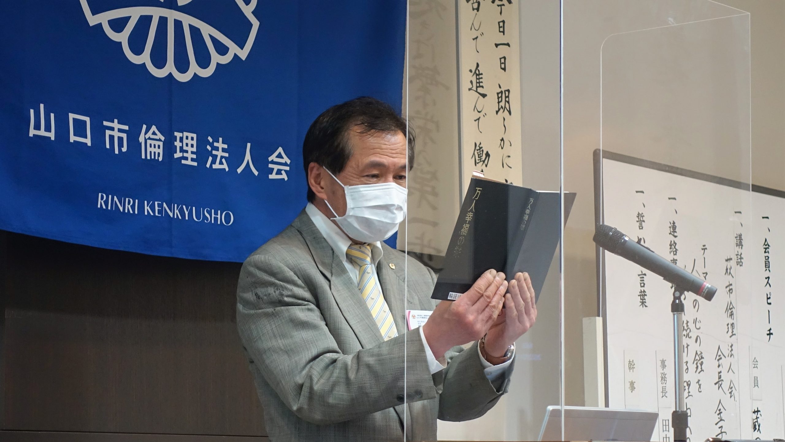 講話:金子聖司氏:萩市倫理法人会設立時の苦労から学んだこと、2代目会長としての経験から得た、人間力に磨きがかかった内容の講話でした。