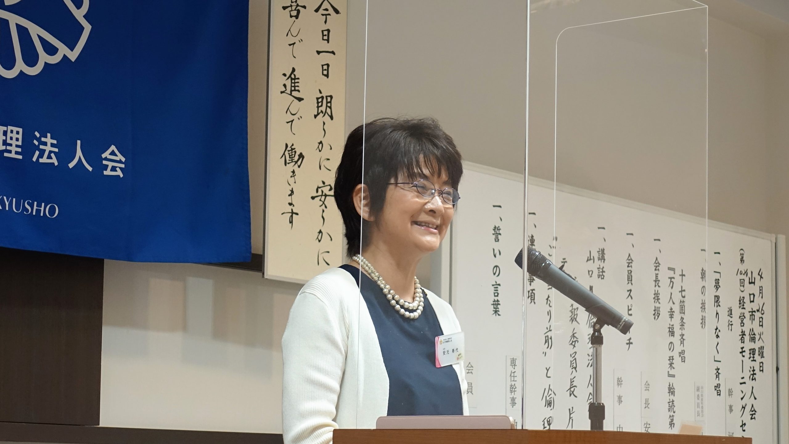 会長挨拶:安元寿代会長: 今、続けていることについて。朝礼後の毎朝の玄関掃除の他に毎月の婦人会だより・毎週の会長挨拶の原稿。これは結構大変です。広報委員会で作成する「生き流」は、もっと大変だと思います。