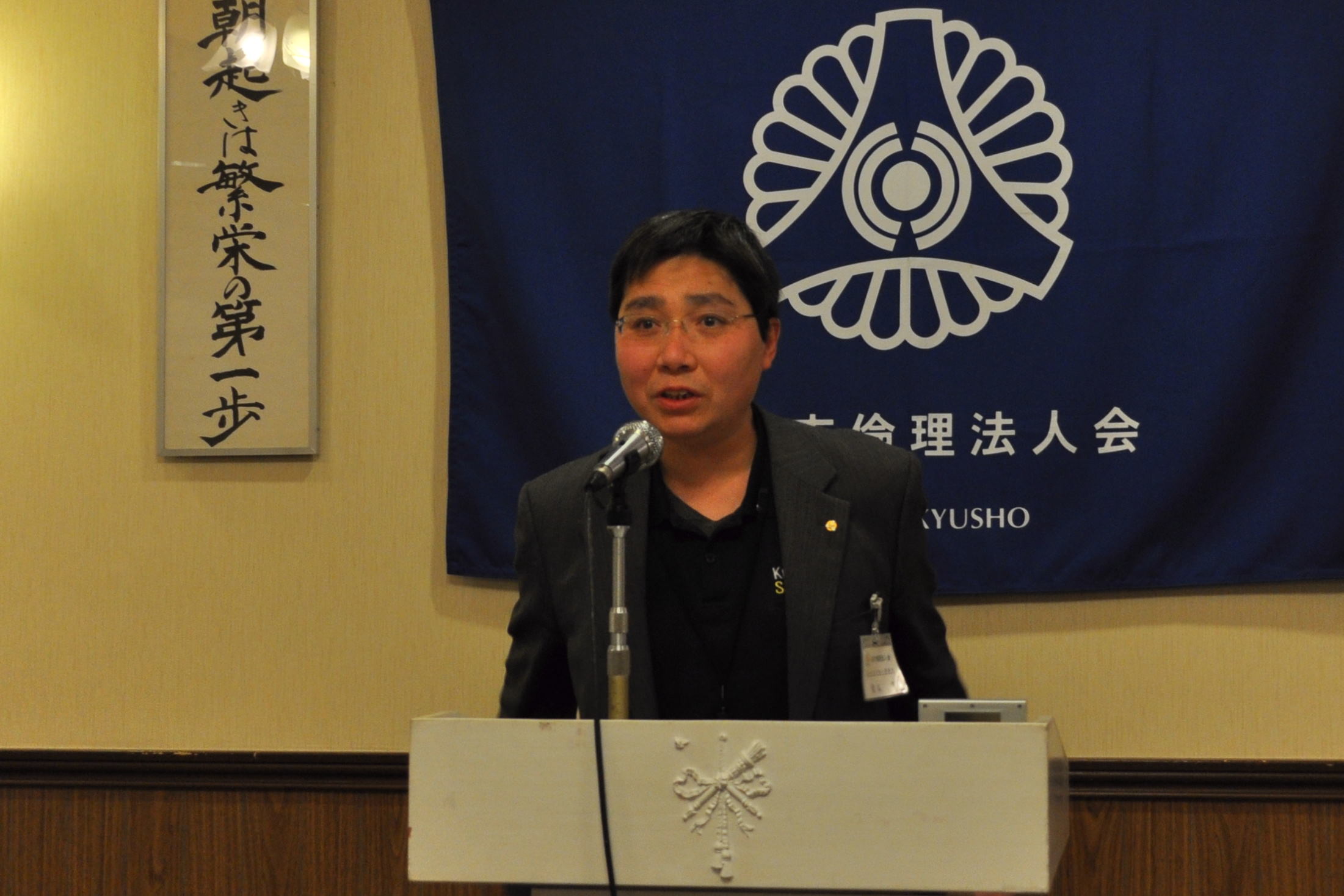 講演に先立ちまして、会員スピーチは、國本 豊 幹事。倫理に入ってよかった事、日々の実践のお話でした。
