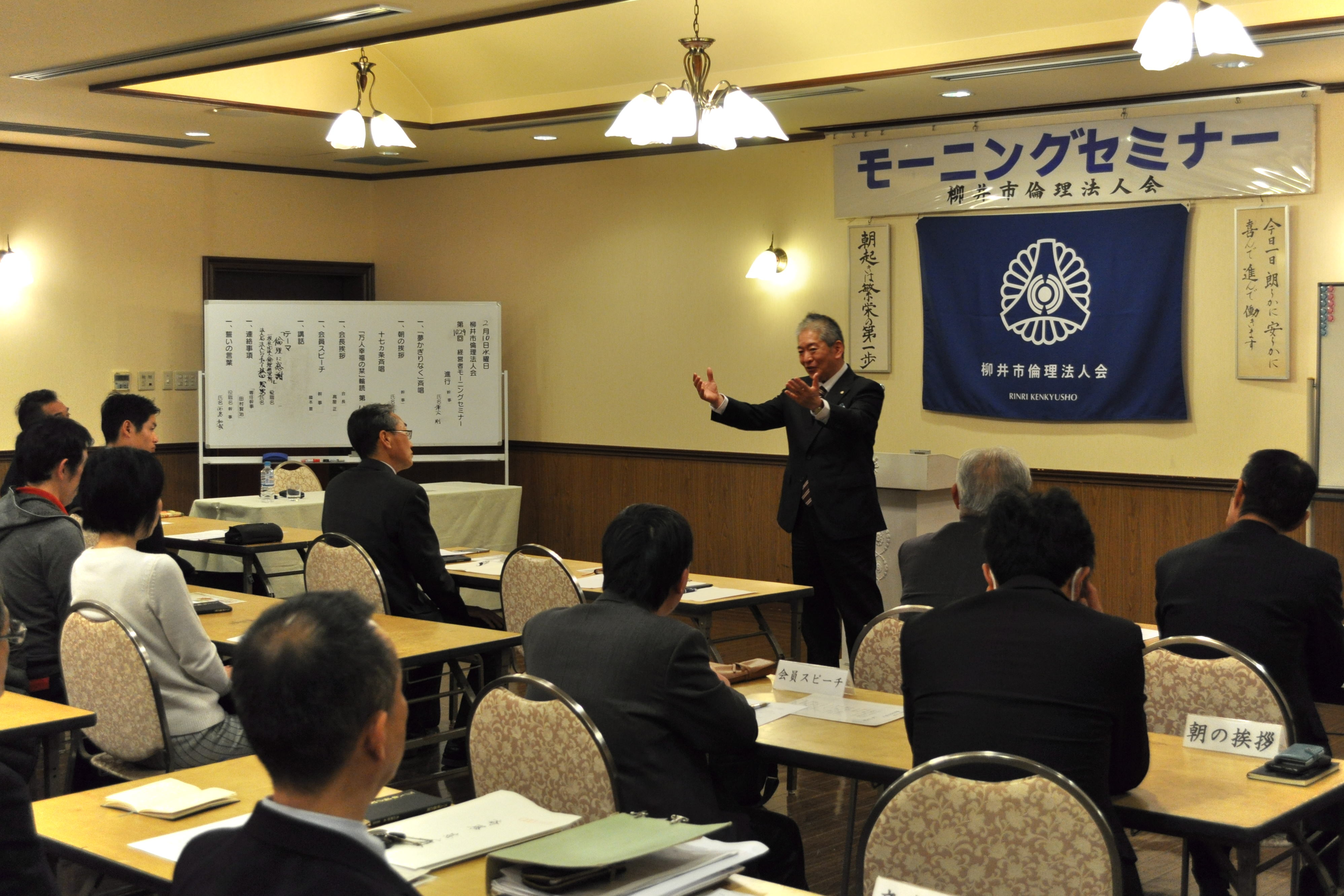 経営コンサルタントを営んでいる林田法人レクチャラー。ある顧客企業の業績が増収増益を続け、社長の人格も変わっていったことに興味を持ち、その社長にお尋ねになり倫理を知ったそうです。自ら、徳島県倫理法人会の門を叩いて入会し、いろいろな要職を歴任されているとの事。