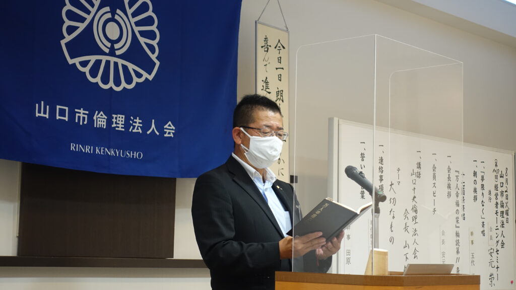 朝の挨拶:五代明孝 幹事:第11条「万物生々」
