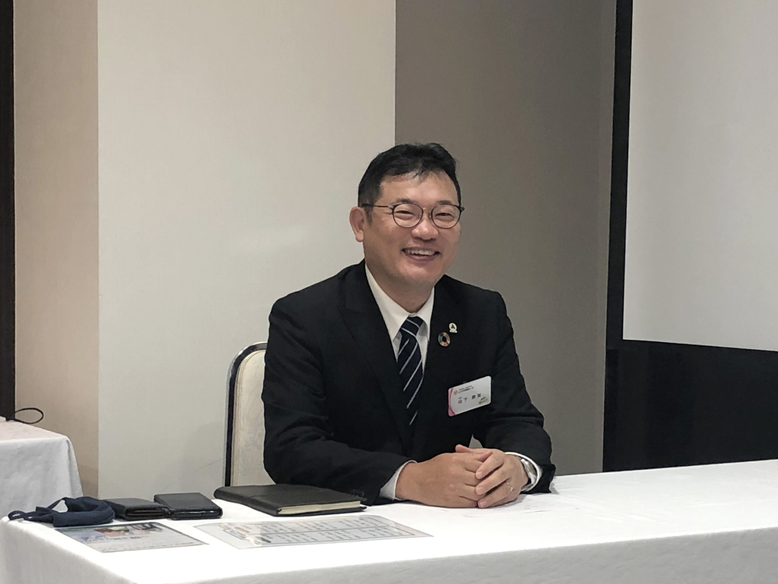 会長挨拶:安元寿代会長: 「本日講師の山下鉄旨会長との昔話を紹介。約10年前にMSの受付を一緒にしていた際、本当に寡黙な人のイメージだったが、唯一奥様やご家族の話になると嬉しそうにされていたことを思い出します。