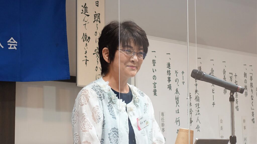 講話:高田 智史 専任幹事 前半は高田ワールド全開!物事を世界的に捉え深く追及する高田専任幹事の強い想いが伝わってきました。後半は、3年間の専任幹事の役を通して、特に今年度は単会の普及拡大の中心的存在として行ってきたことについて想いが詰まった講話でした。