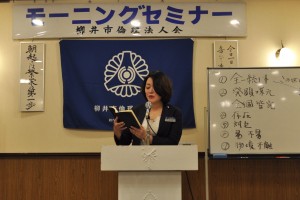 5月18日に行われた第1042回柳井市倫理法人会経営者モーニングセミナーは、「七つの原理の応用と工夫」と題して、北海道倫理法人会 女性委員長 歌原 ゆか 法人レクチャラーの講話を聴きました。