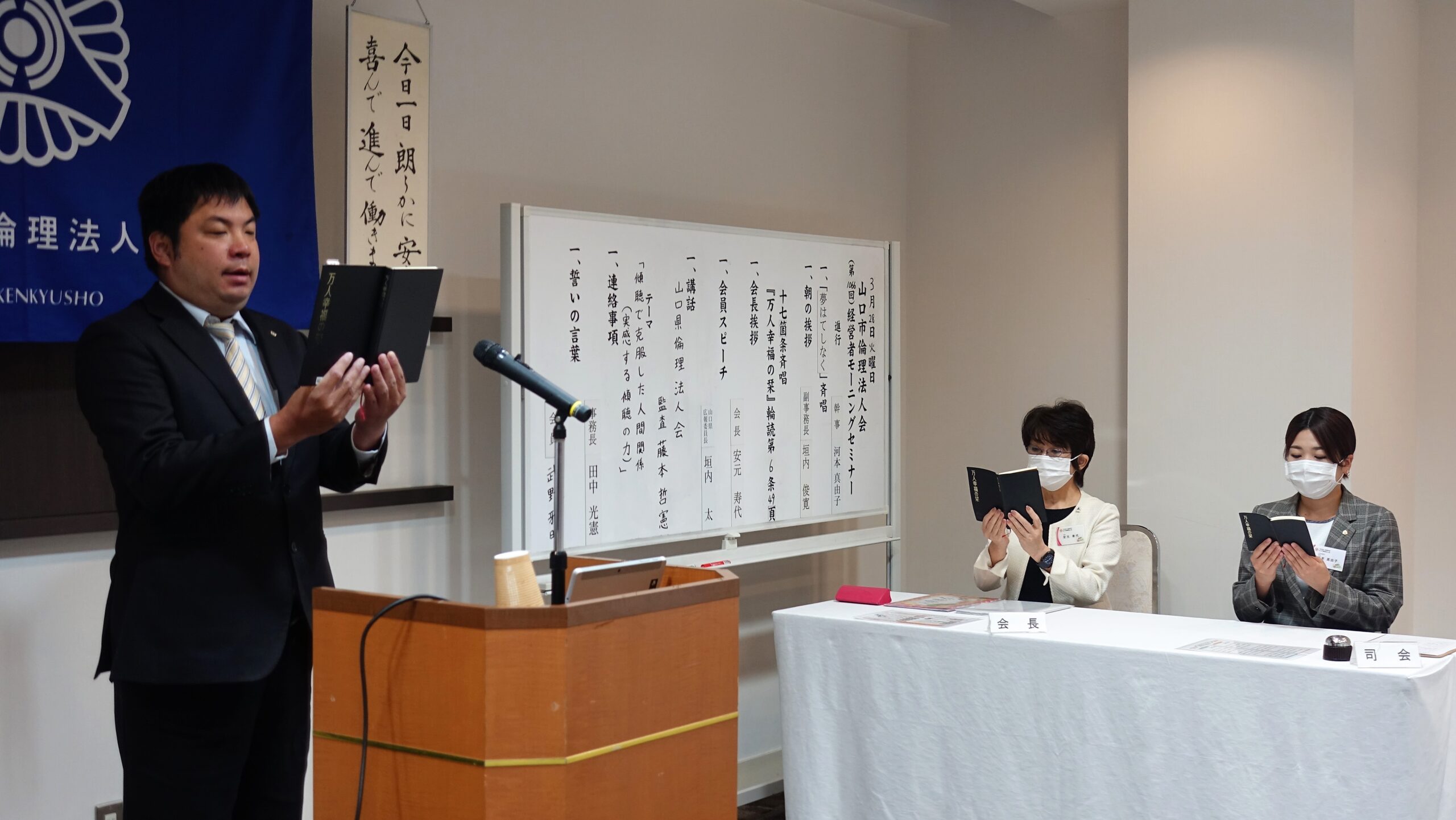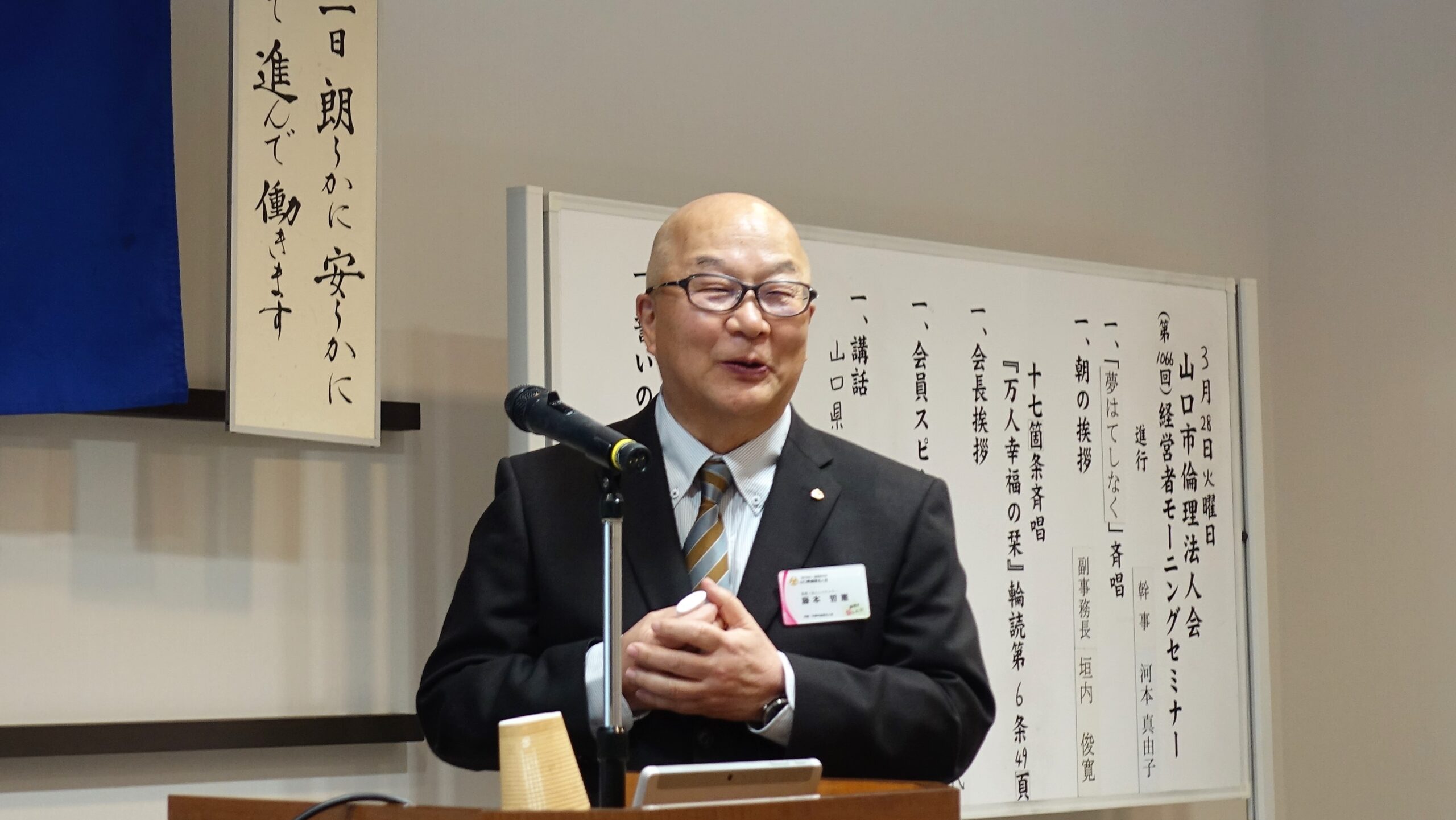 2023年3月28日(火) 第1066回 MS 山口県倫理法人会 監査 株式会社ヤナギヤ 相談役 藤本 哲憲 氏 テーマ:「傾聴で克服した人間関係(実感する傾聴の力)」