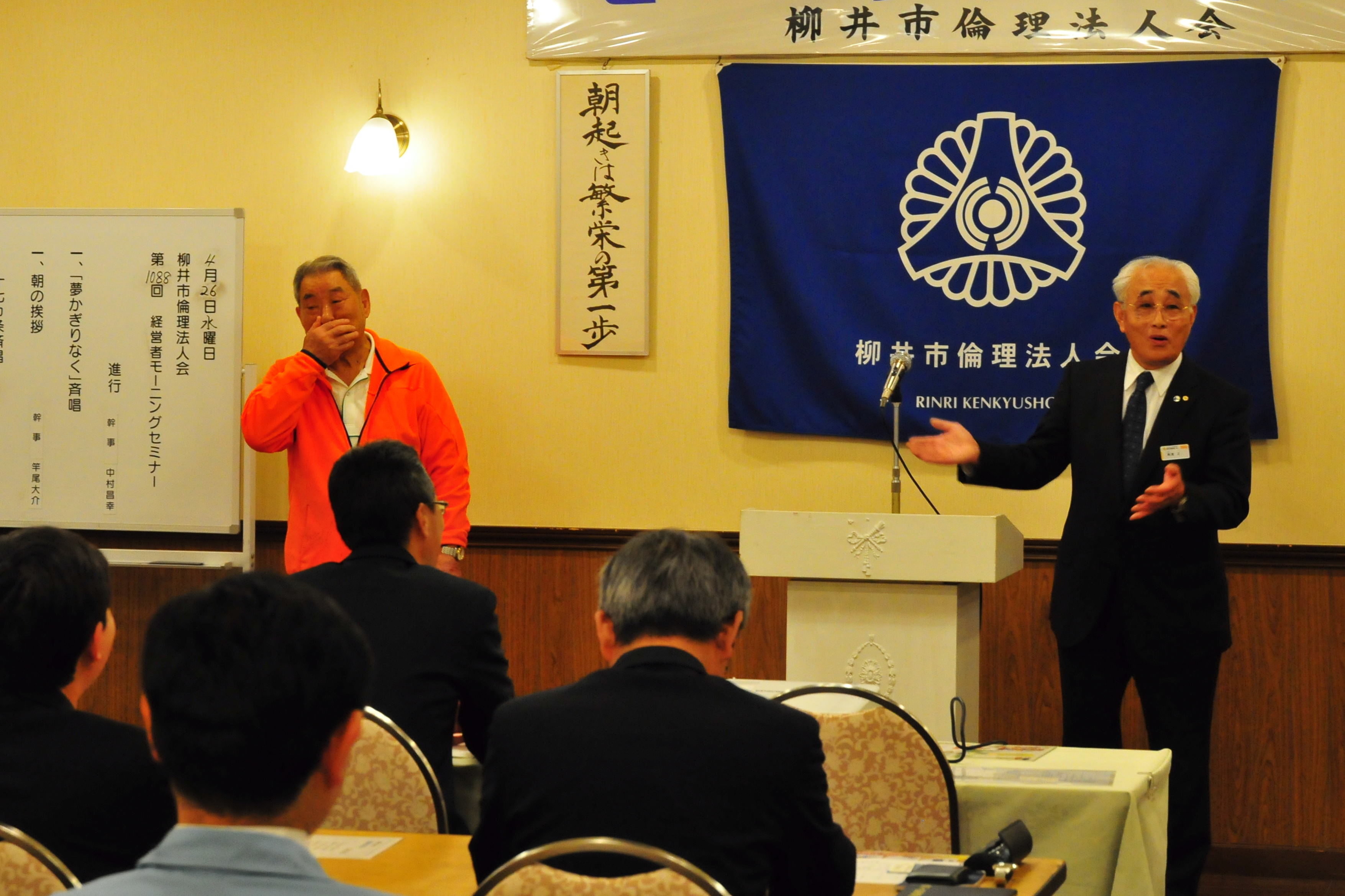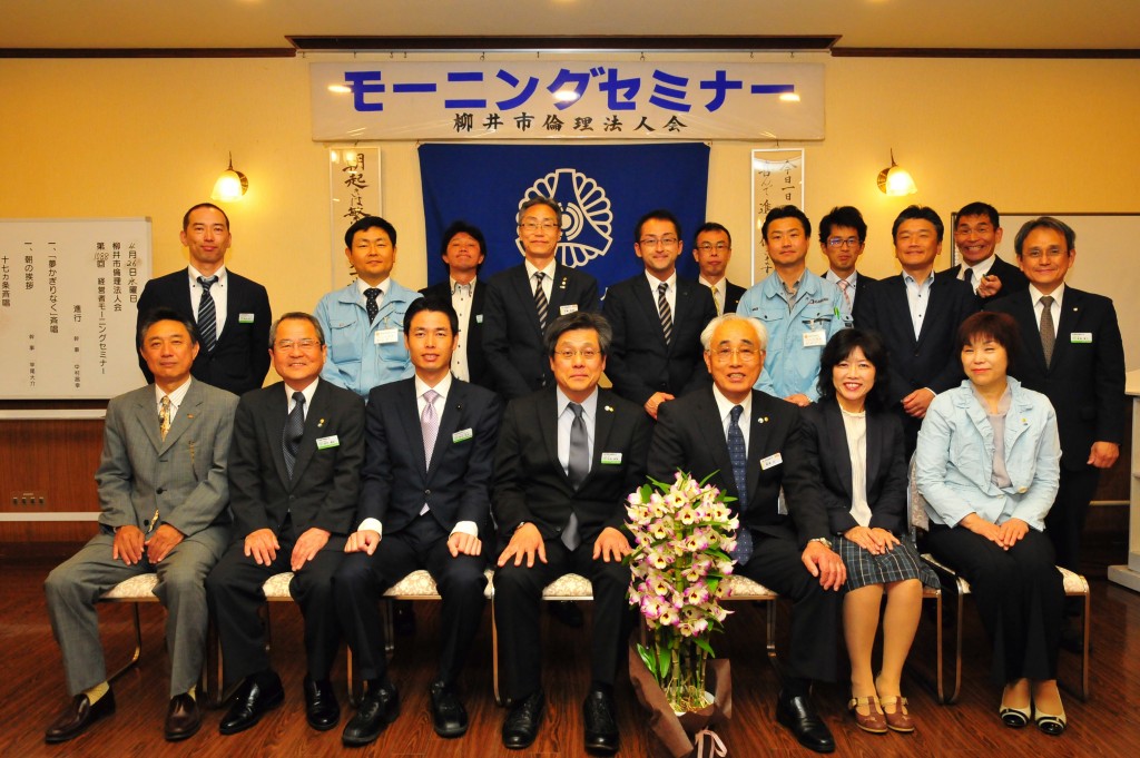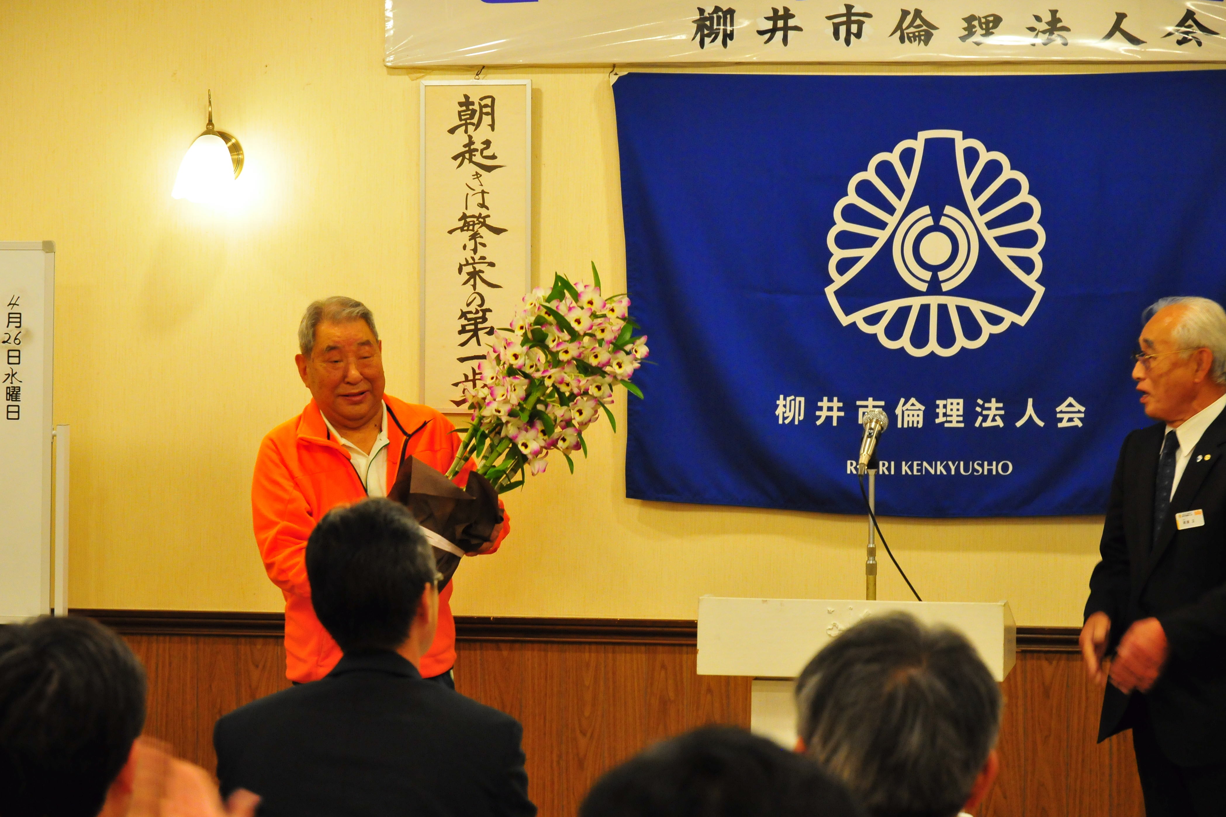 当日4月26日は、藤麻 功 参事の誕生日。倫理を柳井に導入した張本人。会から花束と、ご出席の皆さんから、HappyBirthdayの歌が届けられました。