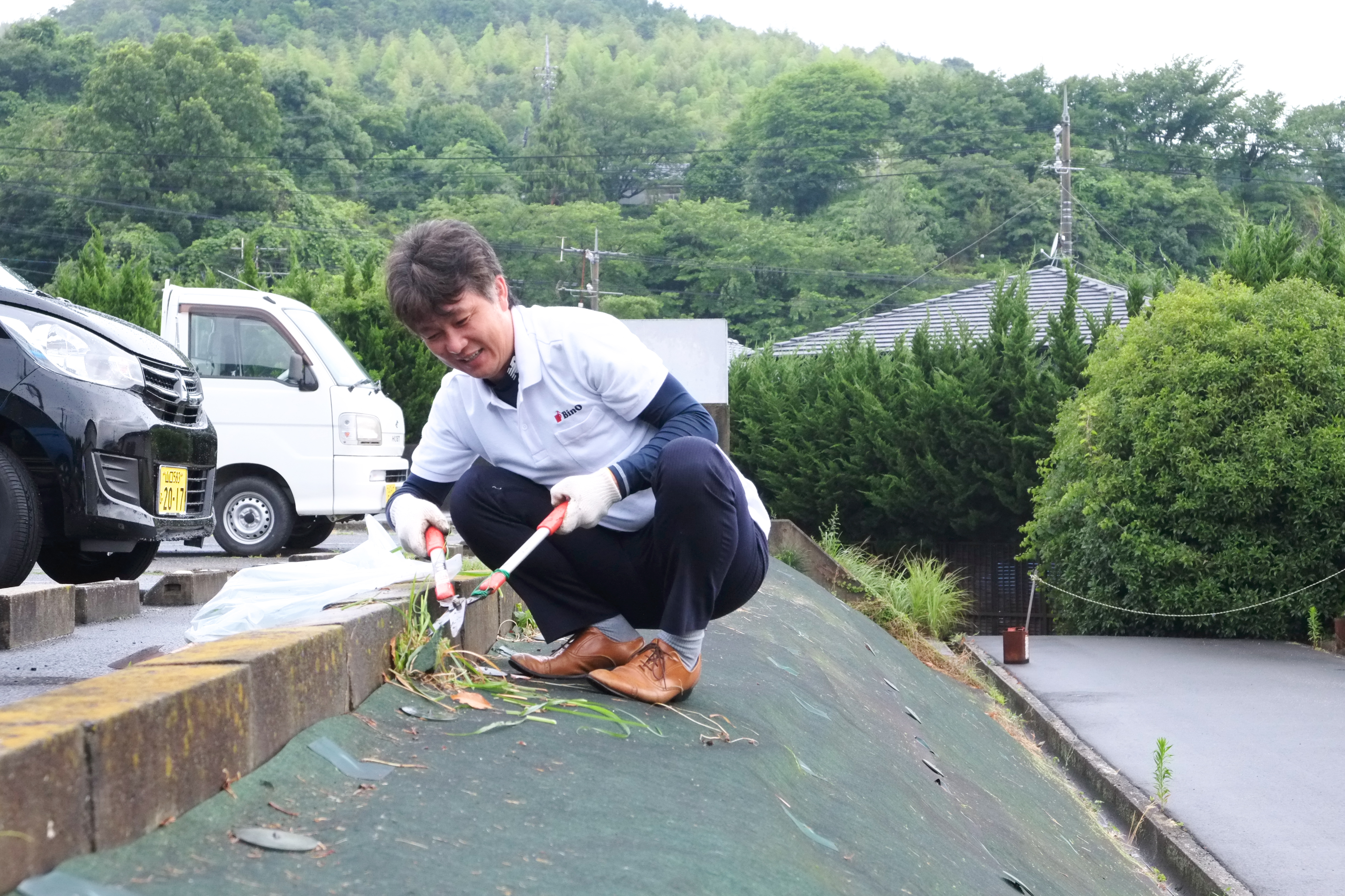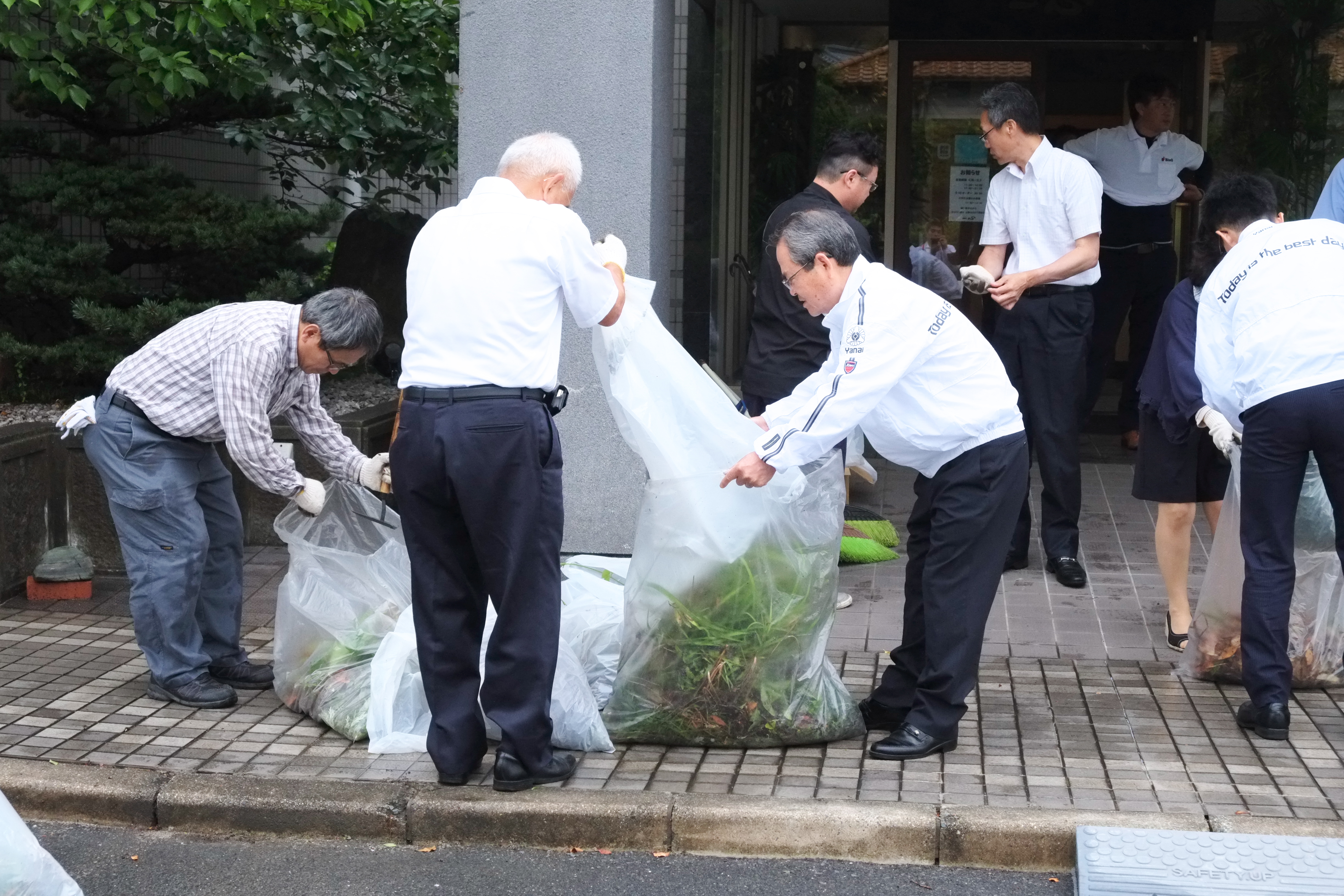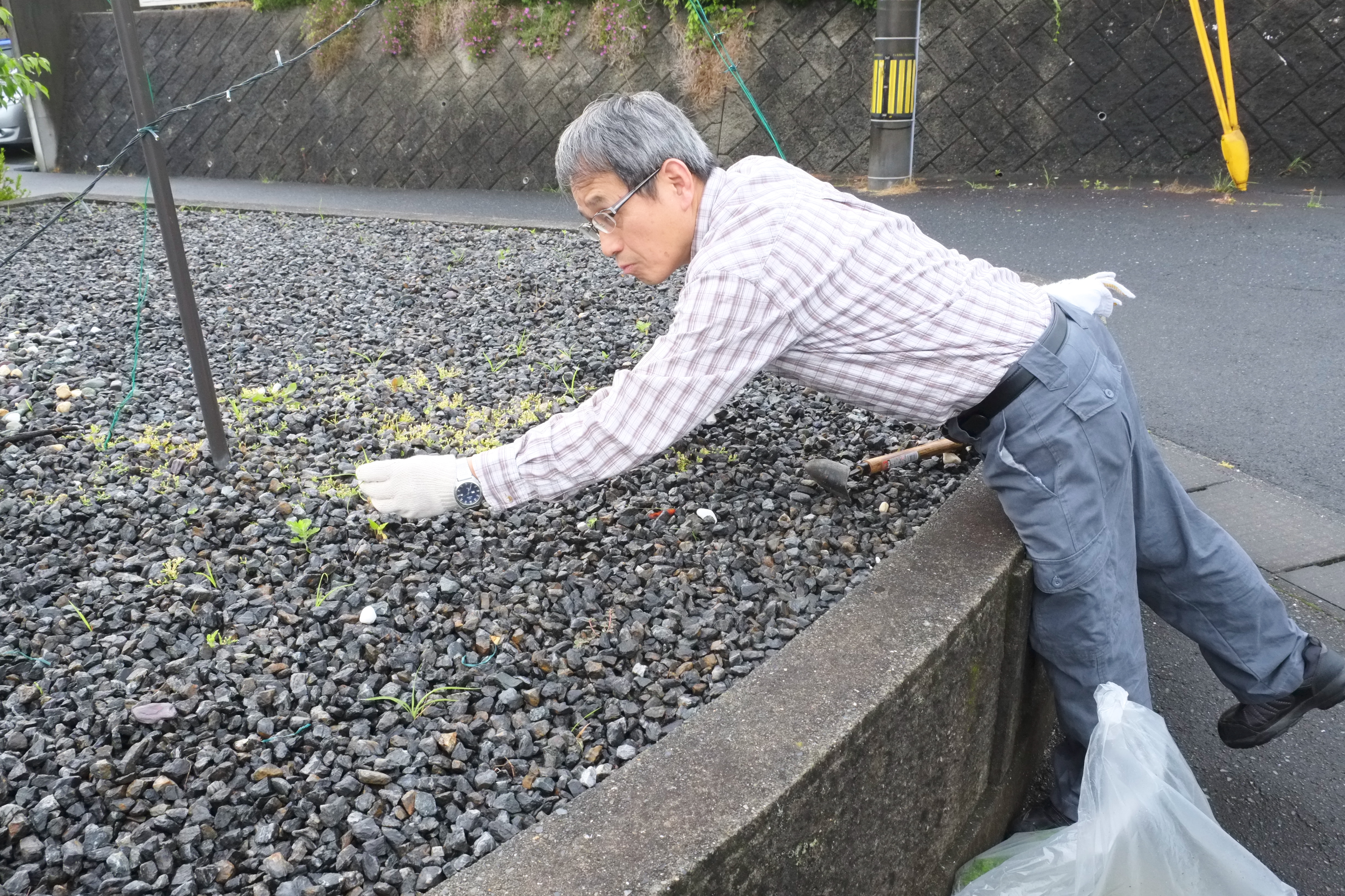 6月21日に行われた第1095回柳井市倫理法人会経営者モーニングセミナーは、毎年6月実施の「清掃活動」、毎週モーニングセミナーを開催している会場『アニバーサリーステージ ベルゼ』周辺の草抜きやゴミ拾いを行いました。本日は一番昼が長い夏至、外はもうすっかり明るくなっております。四季の移り変わりを感じることができる早朝のモーニングセミナー、太陽と地球そしてわが命あることに感謝しながら仲間と楽しく清掃活動に汗を流しました。( 本日のポーズ 5・3 で ゴ・ミ でした。)