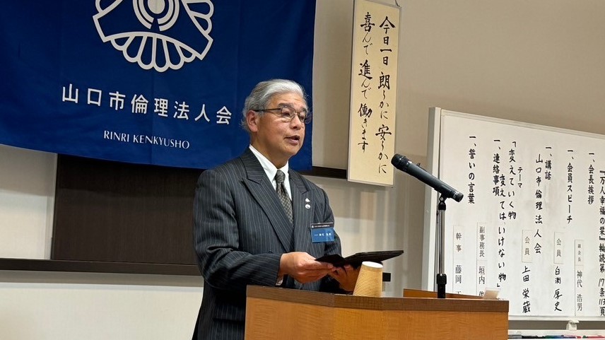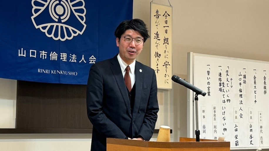 昨年9月にも山口市倫理法人会で講話させて頂いた、常に心掛けていることをお話します。私は「聞く」ということを大切にしています。それを「傾聴」とも言い、相手から傾聴することで安心感を与えることもできるからです。