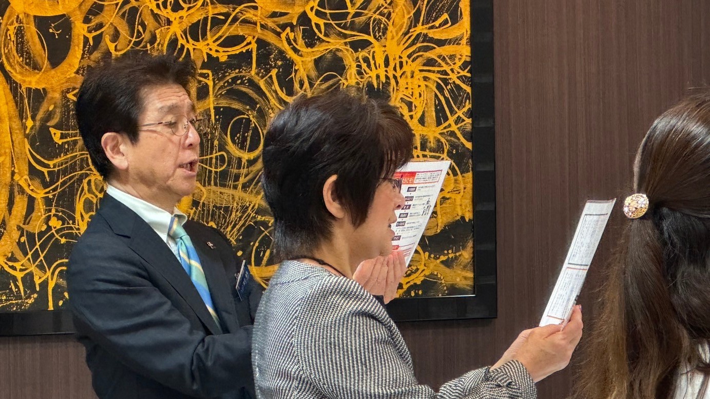 朝礼で岡田講師からNHK(にこにこ・はきはき・きびきび)を教えていただきました。