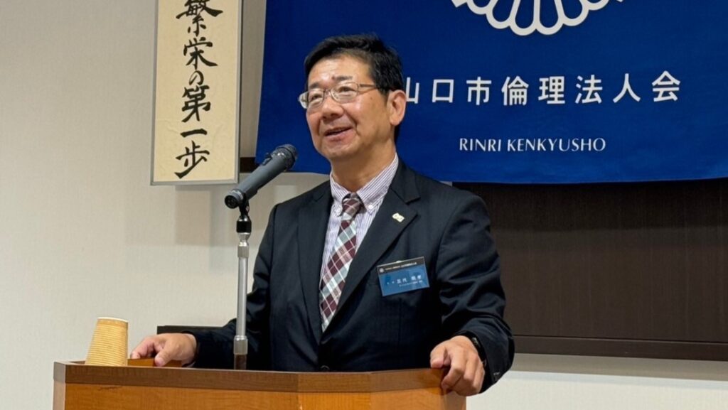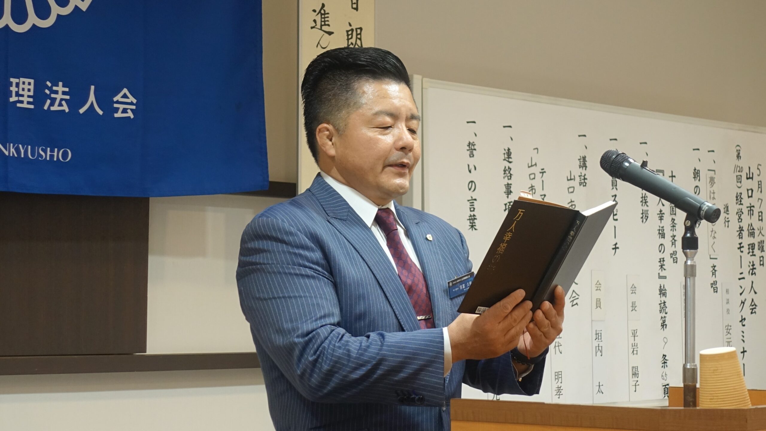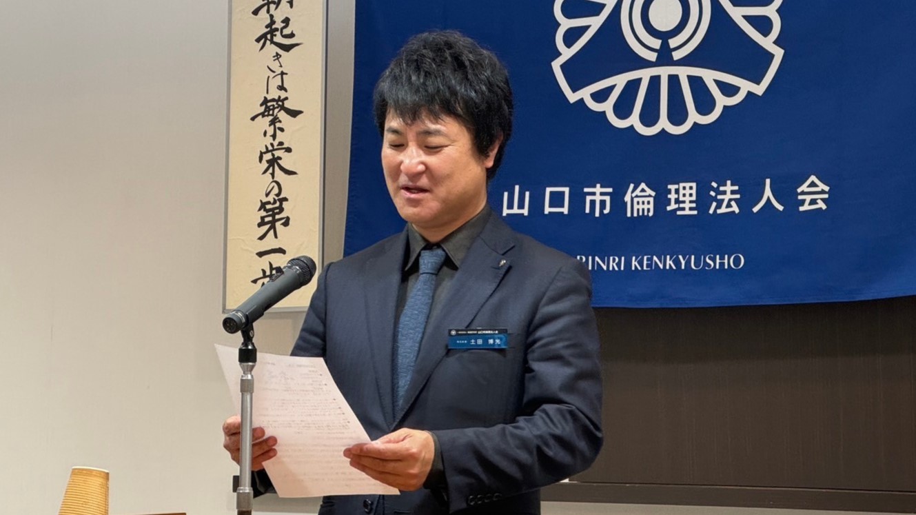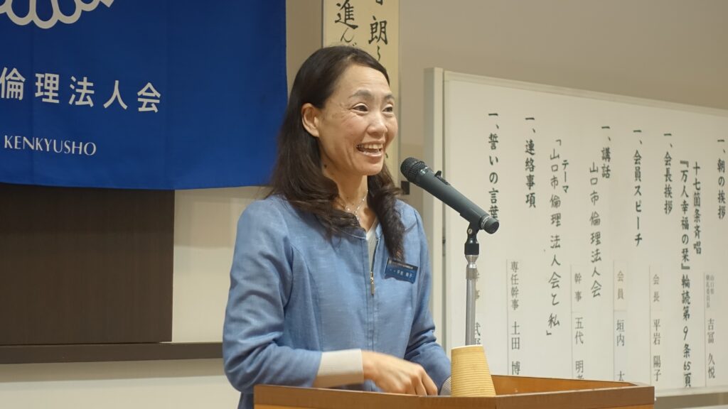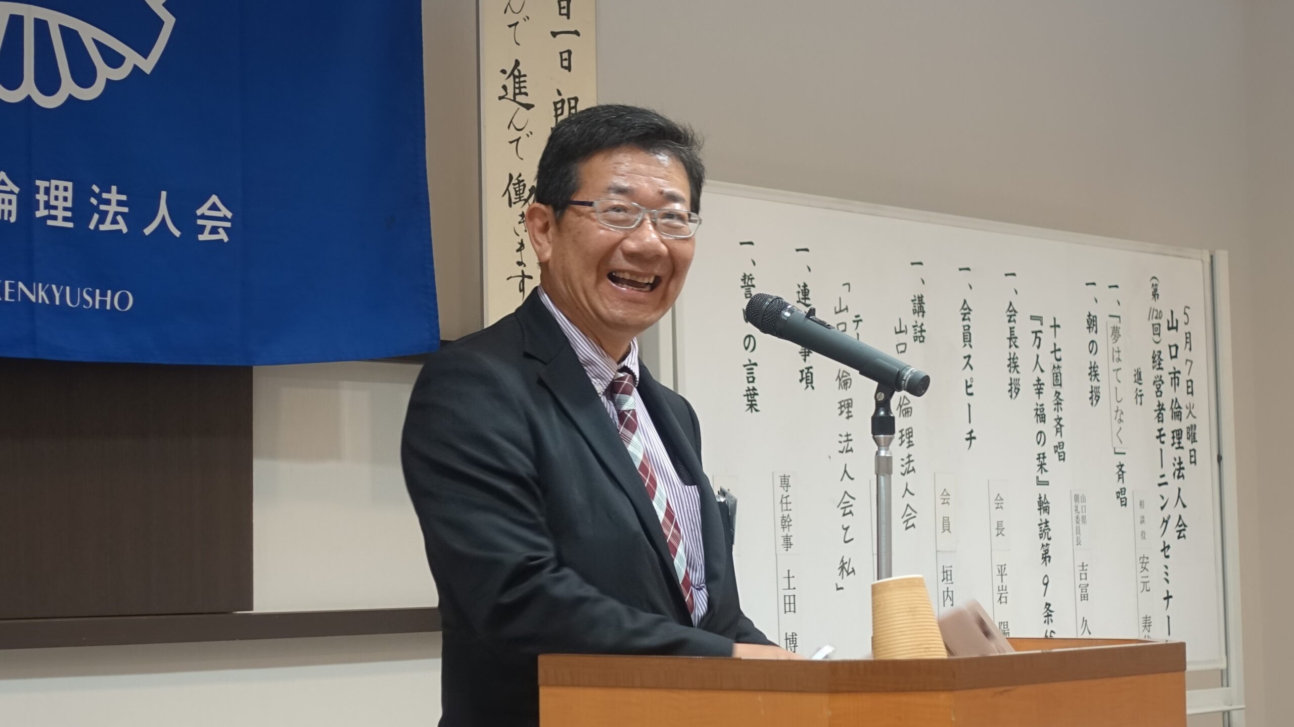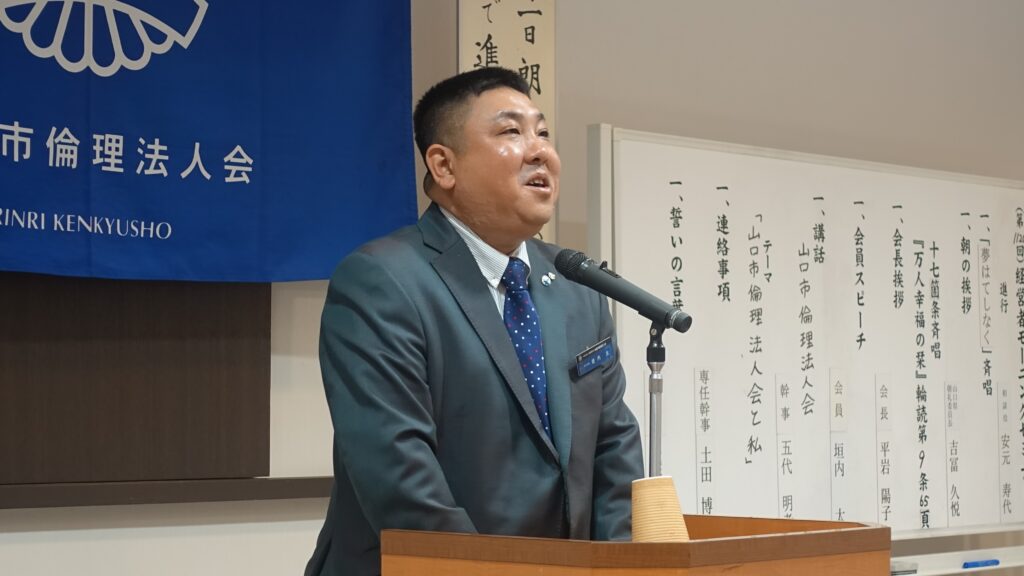 目標達成の数字が出てくるのは嫌な方がおられると思いますが、ここにいる「1人が1社」達成すれば全体の目標を達成します。良い雰囲気の山口市倫理法人会、皆さまと一緒に勉強を続けたいと思います。