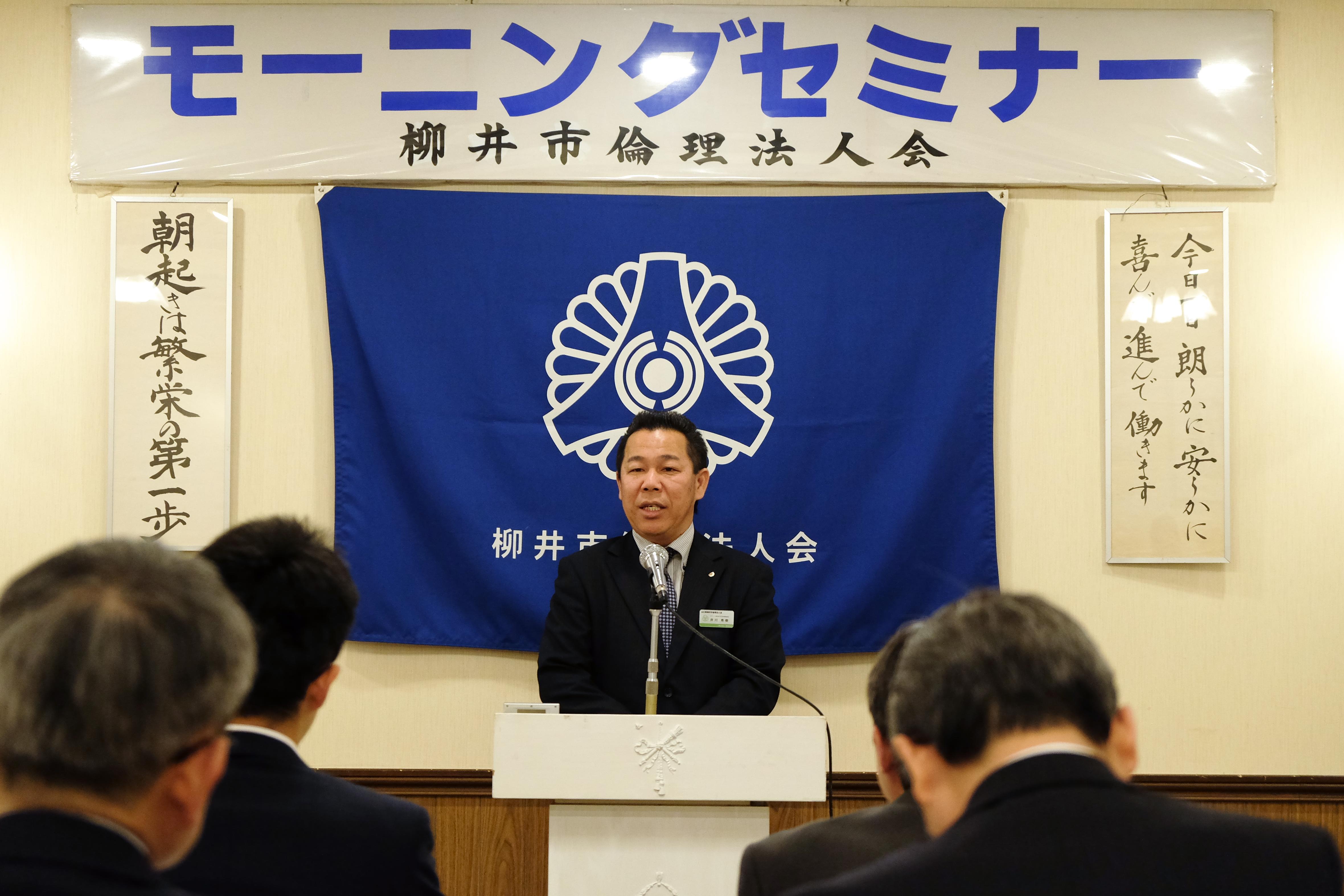 会員スピーチは、井川 秀樹 幹事(カワノ工業(株) 住宅設備事業部 部長)朝礼コンテストについてのお話でした。