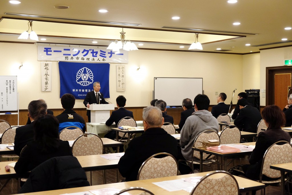 大きいことを成し遂げるにも、まずは足下の実践、夫婦の和合一致が大切。奥様の話を毎日10分間真剣に聞く。関心は愛、家庭を明るく、会社を明るく、良い世の中を作っていきましょうとお話しいただきました。笑顔と優しさあふれる言葉に、純情な心があふれてきたモーニングセミナーでした。