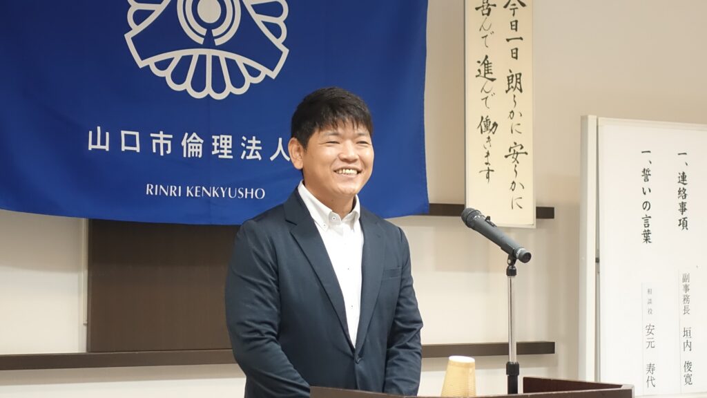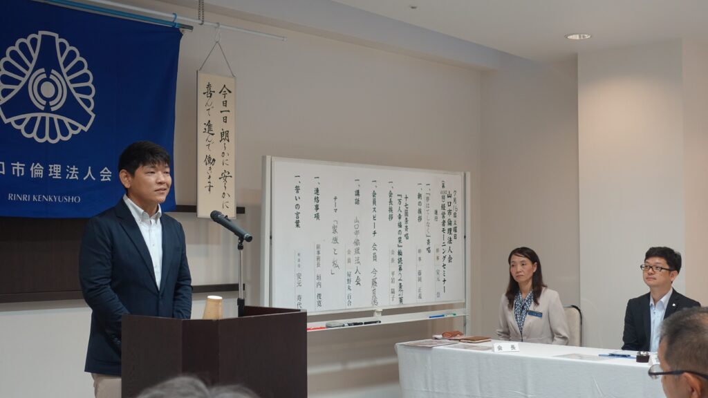 広島県倫理法人会の森本女性委員長の紹介で山口市倫理法人会に入会された広島市出身で山口市在住の屋野丸さん。入会直後から毎週積極的にモーニングセミナー・朝食会に積極的に参加されています。