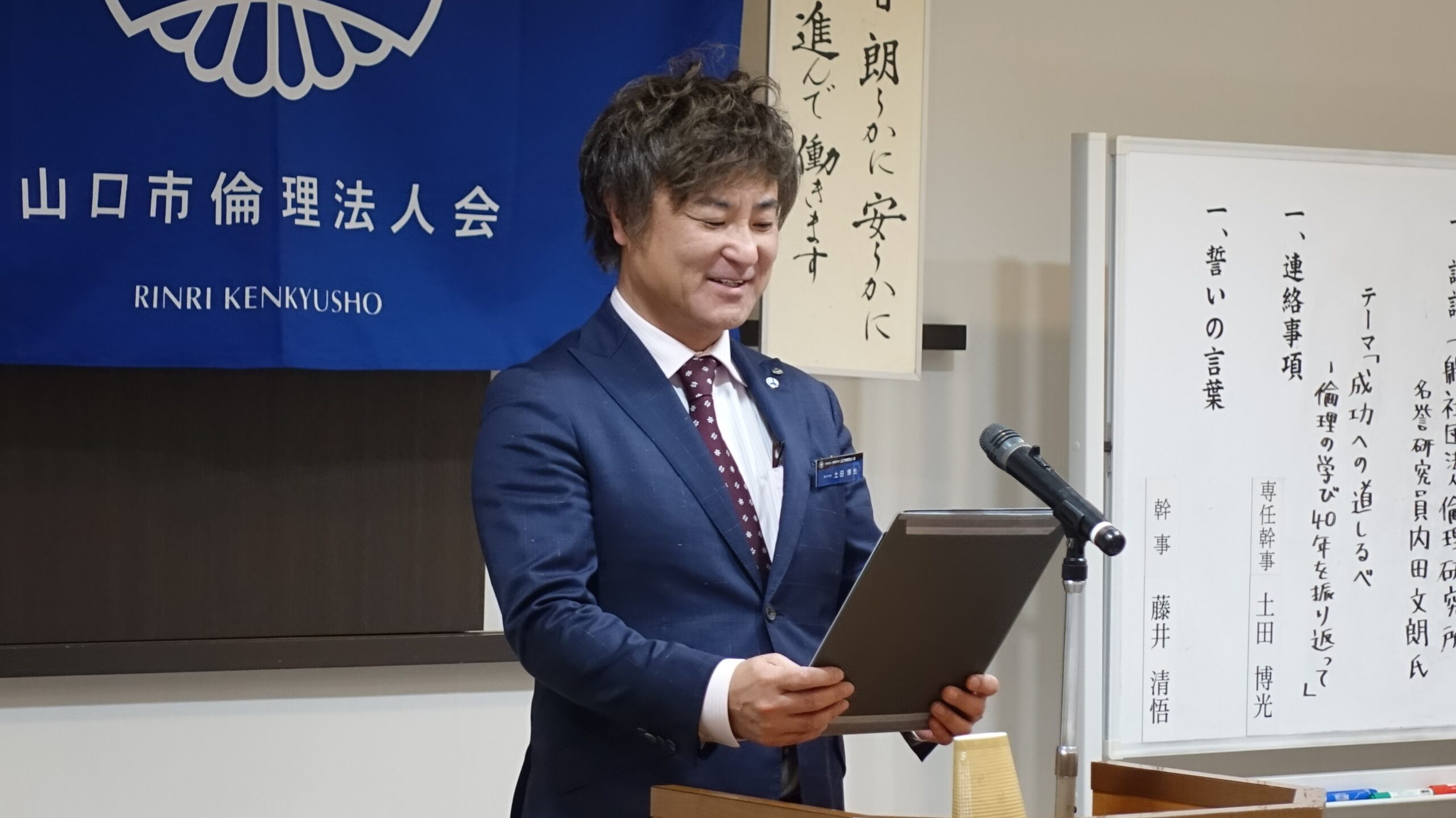 後継者倫理塾生として、朝起きの100日実践を全うして変わったこと、感じたことについてのスピーチでした。