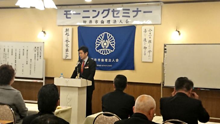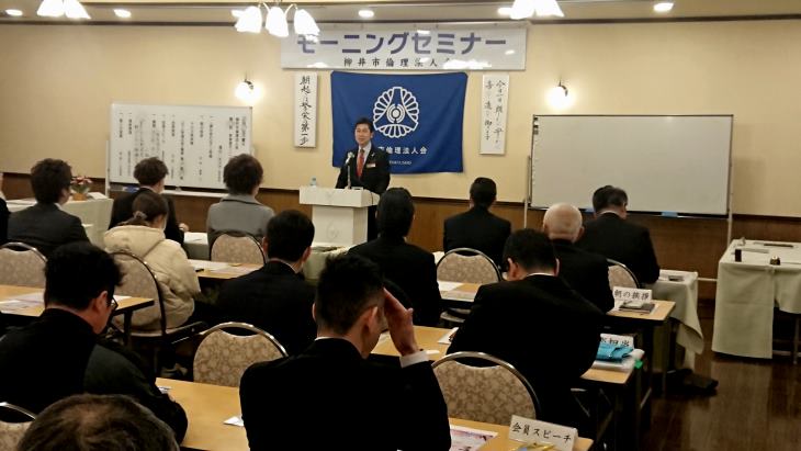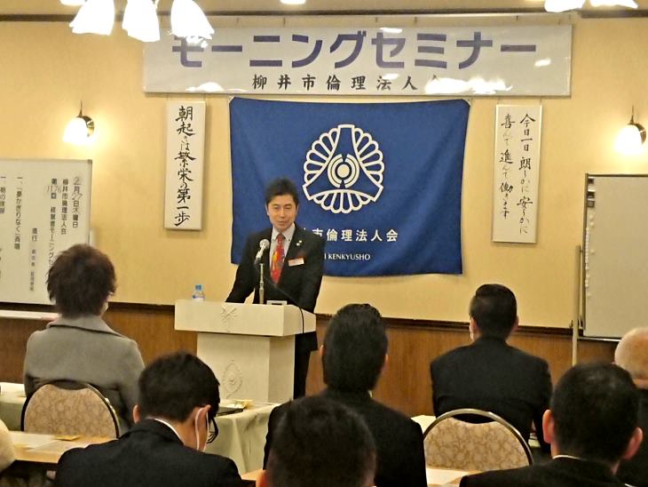 柳井市倫理法人会第1176回モーニングセミナーは講師に(一社)倫理研究所 法人レクチャラー (株)丸勝 代表取締役 山脇 健司 氏をお迎えして「幸せになる法則発見!超かんたん 倫理とは?」と題してお話をいただきました。ご実家が京菓子問屋であり、家業をお兄さんと継いで経営をするべく修業に励んでおり、そのころに奥様と出会い菓子職人から一転して奥様のご実家の呉服問屋へ入られることになりました。長い下積みの間に業界のいろはを学ぶべく、お客様先への訪問を繰り返し、物事を教わるなどわからないことを自ら積極的に吸収していき、経営に携わる立場に就かれます。事業拡大とともに売り上げは増え、会社の規模は大きくなっていきますが気付かなかったところで負債が膨らんで倒産をしてしまいます。何も残らない状態ですべてを失ってしまい、大きな挫折を経験します。奥様も自信を責めてしまい体調を崩されるなど生活に大きな変化が現れることになります。縁あってある企業へ入られ、精一杯働く中で会社を再興したい思いがふくらみ独立を決心されます。それからしばらくの後に倫理法人会と再会し、MSや活動を通して負債を抱える前の会社が倫理法人会の会員だったこと、義理の父親が倫理法人会と深いつながりがあったことなどを知ることになり、倫理法人会とはなんなのかを学んでいくようになったそうです。数々の倫理指導を受け夫婦愛和や祖先とのつながりを実感する出来事も経験し、新たな事業での会社も順調そのもの。現在では奥様も別会社を経営するようになるなど、お二人ともとても充実した日々を送られています。「夫婦愛和」「夫婦は一対の反射鏡」まさに夫婦の幸せを感じ取ることができました。