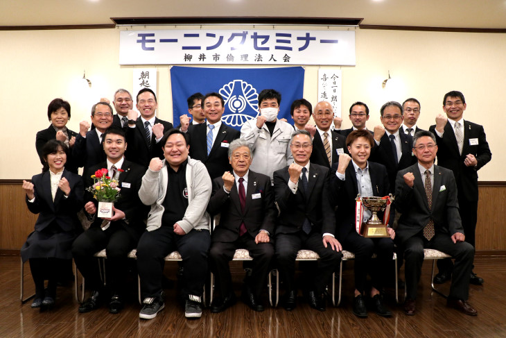 この日は冒頭で3月16日開催された第10回山口県朝礼コンテストで、見事優勝された和楽の方々が優勝報告に来られました。お二人とも大変うれしそうにお話をされていました。