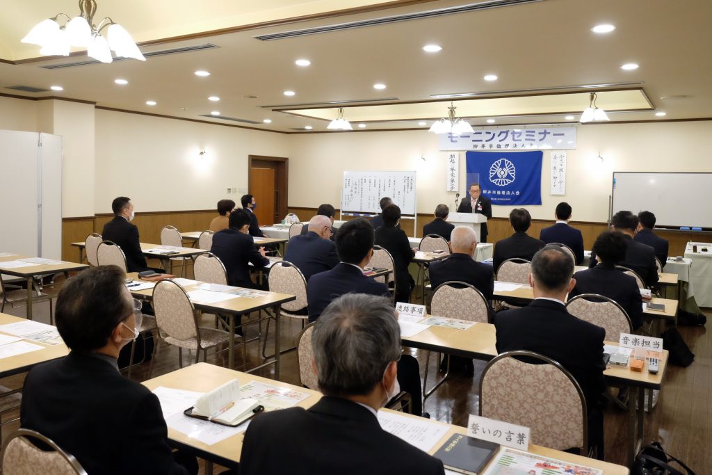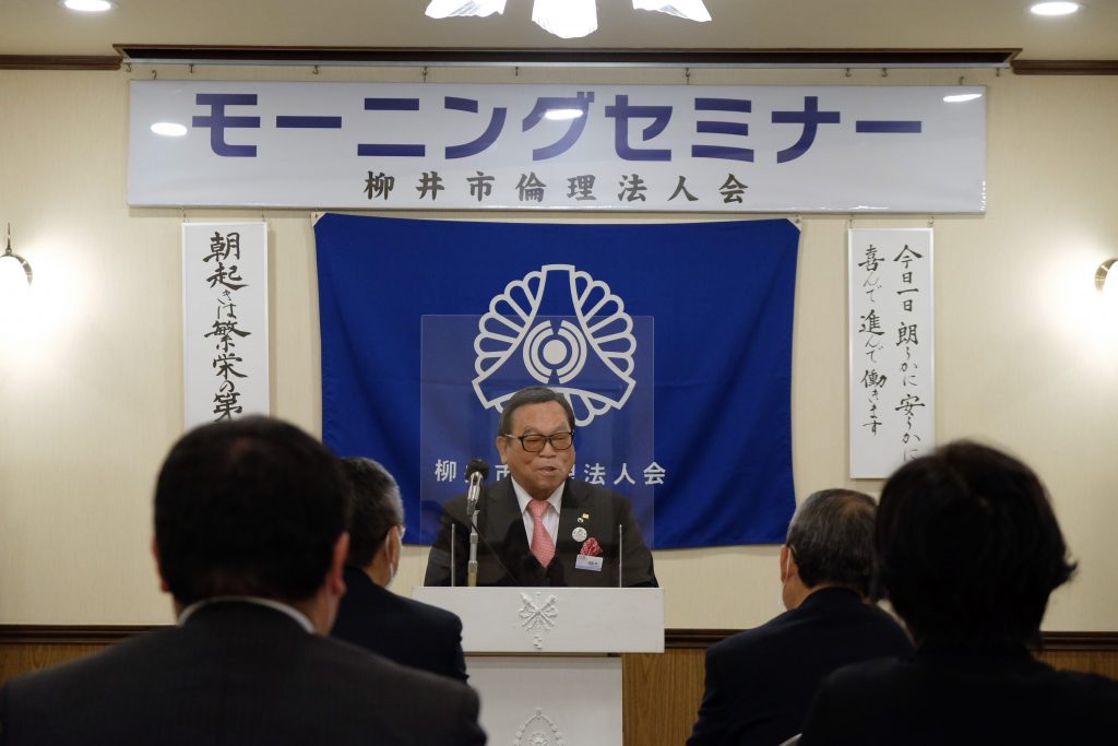 事業経営における数々の苦難を受け止め、強い心で頑張れたのは、自分の心の大黒柱である、倫理のおかげだと熱く語る森脇法人アドバイザー。倫理の学びのすばらしさと実践の大切さを感じたモーニングセミナーでした。