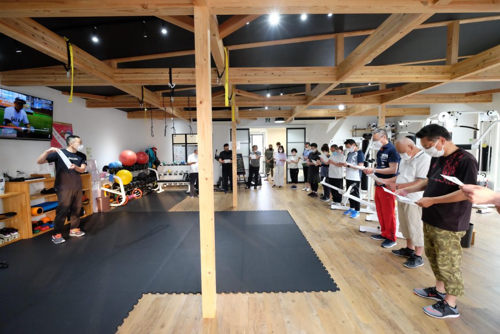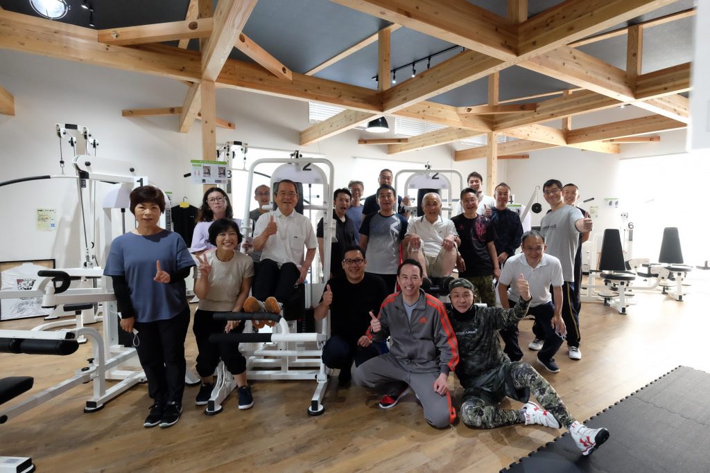 代表の竹岡 祥次 氏(柳井市倫理法人会 青年委員長)から、基本の体操を習い、マシンにて体を動かしました。今までの運動とは違う、目から鱗の運動方法で、心も体もリフレッシュ、素晴らしい朝のスタートでした。心も体も柔らかくなって、皆さん最高の笑顔!!