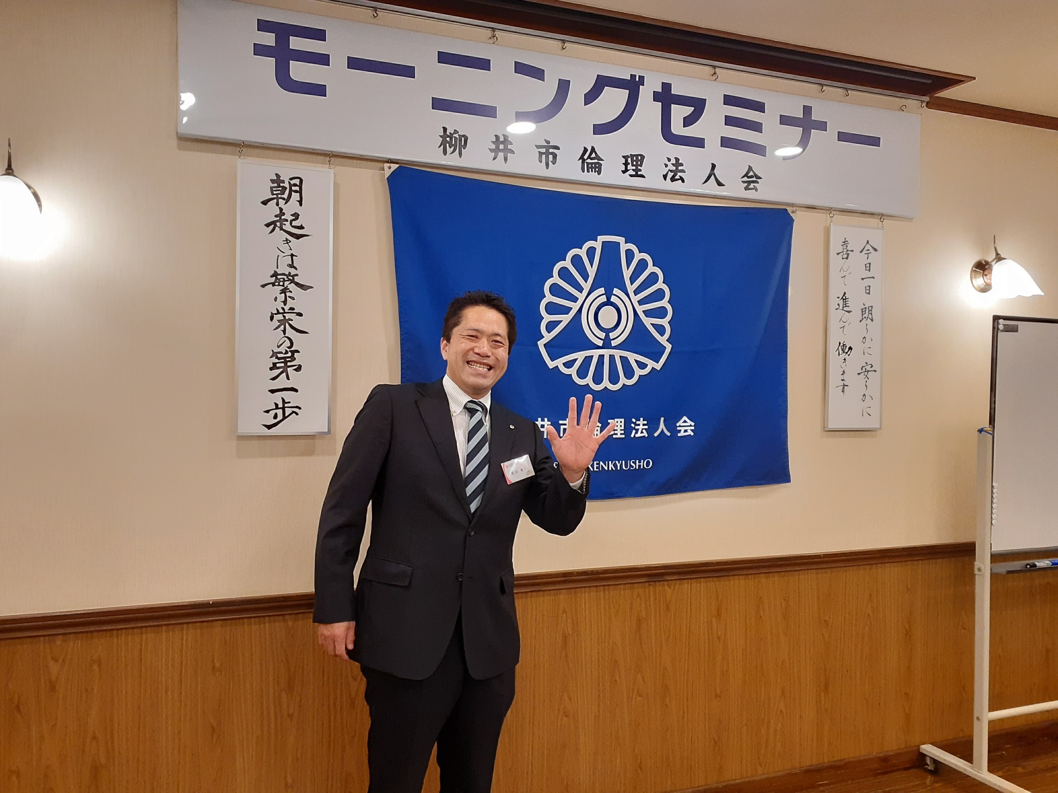 4月6日の柳井市倫理法人会第1312回経営者モーニングセミナーは、萩市倫理法人会 藏田 進一 青年代表委員(オフィス進一代表)による「人生で1番苦しくて悲しかったこと。4歳の子が救った命、作った会社」と題した講話でした。