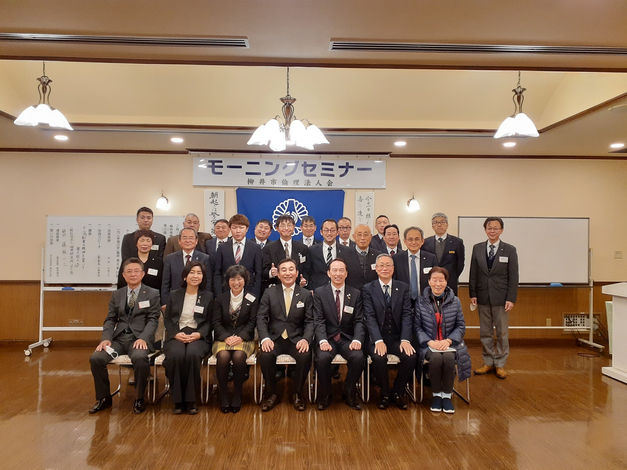 2/1の柳井市倫理法人会第1352回経営者モーニングセミナーは、(一社)倫理研究所 法人局 藤麻一三顧問(株式会社フジマ代表取締役)による「創業の精神を貫いて親を超える」と題した講話でした。
