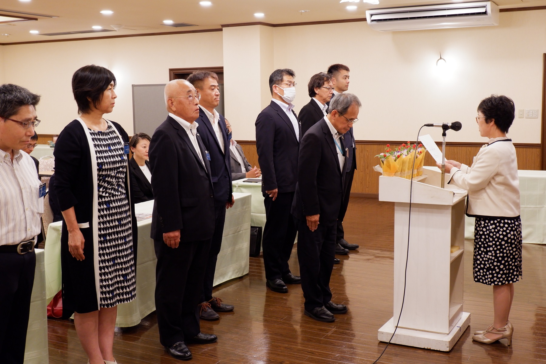 副会長2名をはじめとして監査、正副専任幹事、事務長、各委員会の代表委員、各委員が順次新年度に当たっての思いをお話されました。前年度のお役を留任されている方も多くいる中、初めて代表委員に任命された方は単会の代表としての県の委員会活動への参加へ不安と期待の想いが伝わってきました。