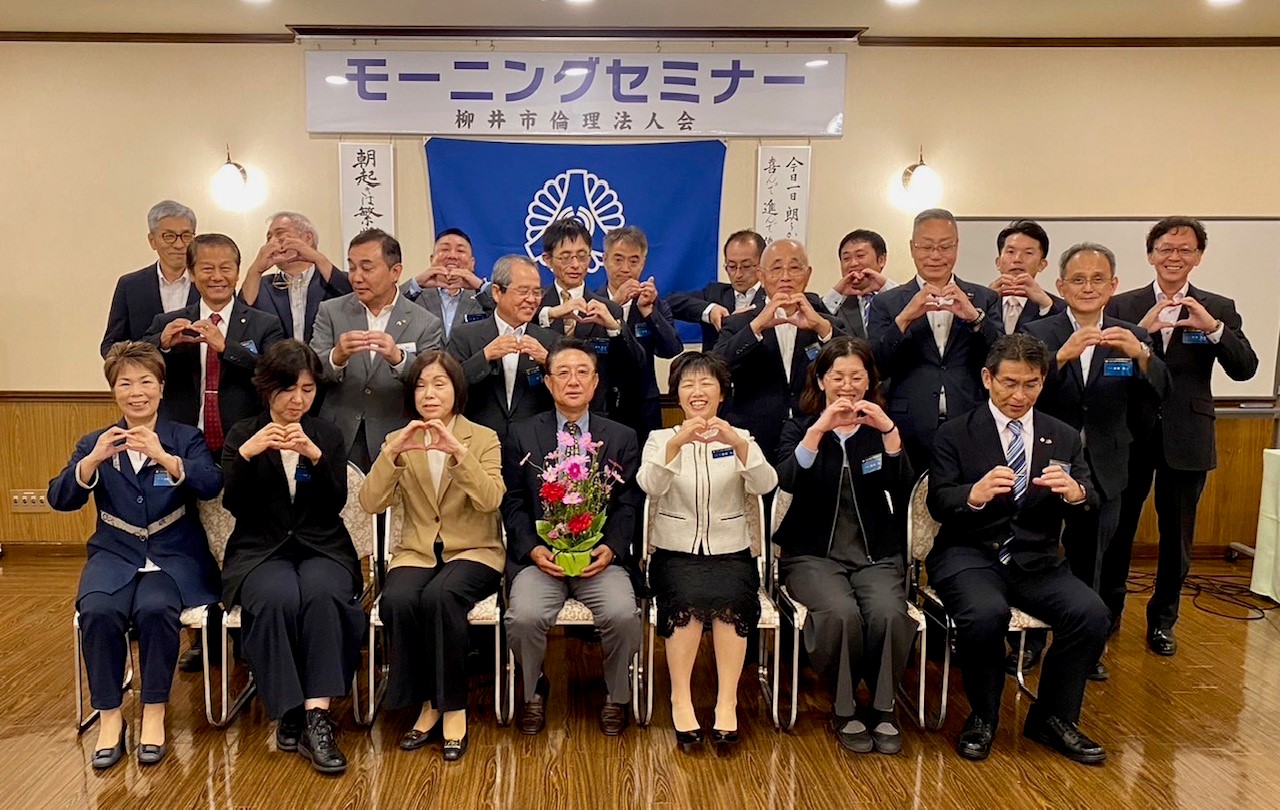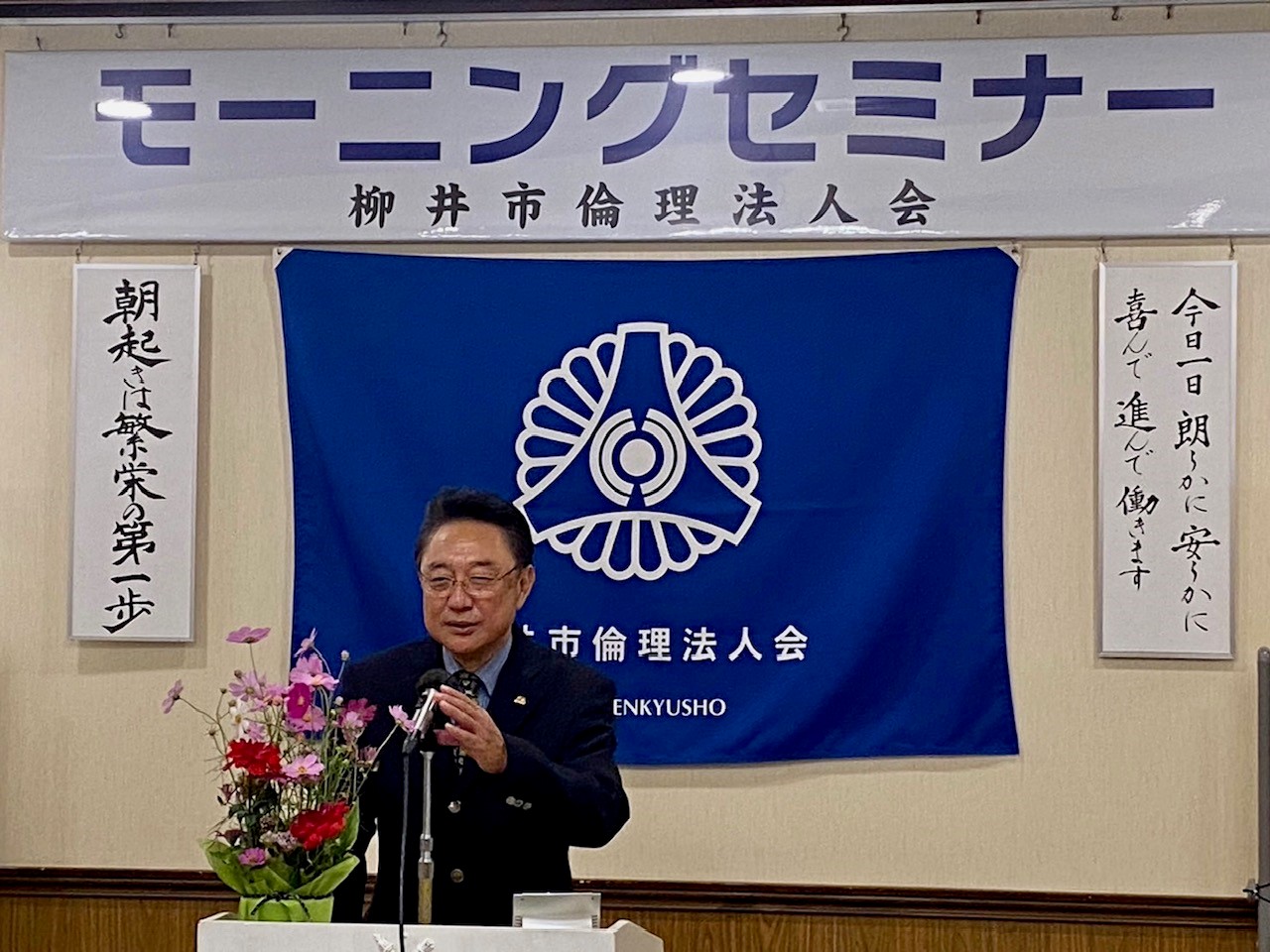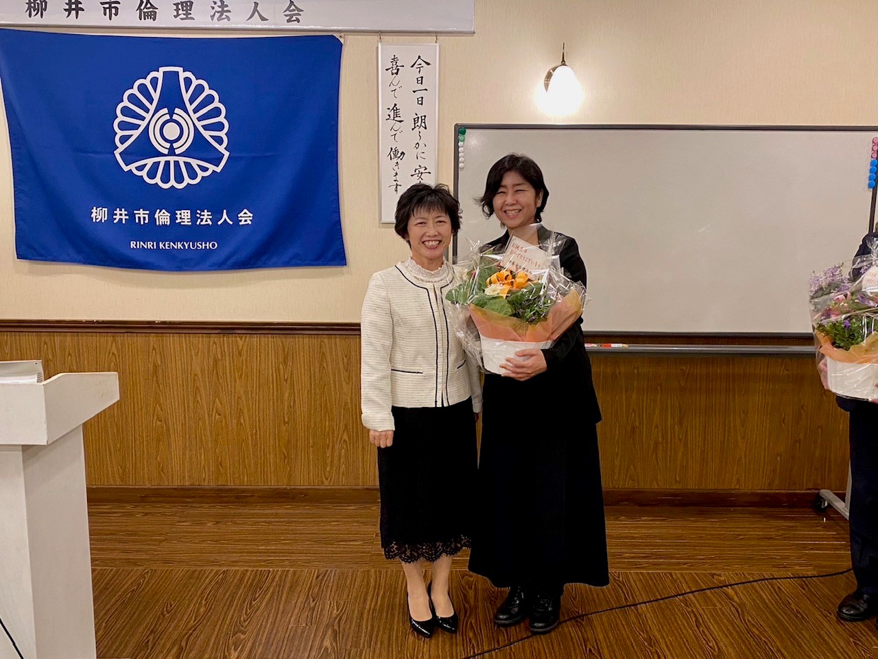 廣田会長の挨拶では10月お誕生日を迎えられる会員様12名の紹介とモーニングセミナーに参加されていた尾崎専任幹事と末永幹事に誕生日のお花が贈呈されました。