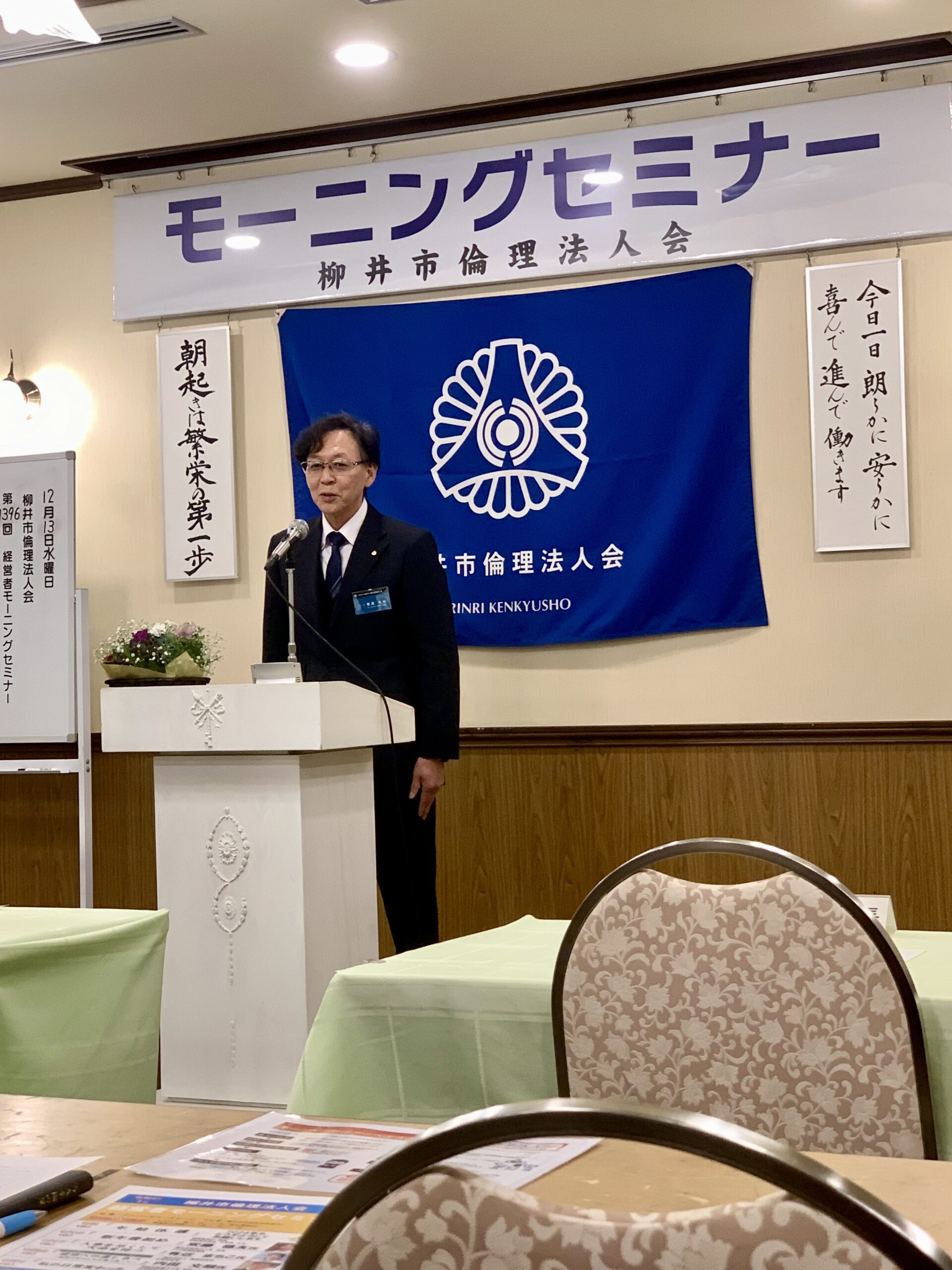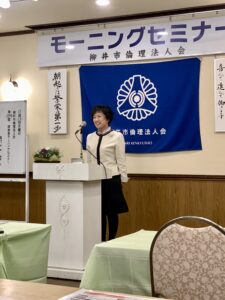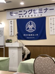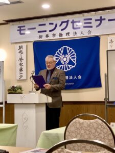 「禍福糾纆」と題し、ご自身の幼少期から現在に至るまでに体験されたことを倫理法人会で学んだ万人幸福の栞の内容と重ねてお話しされました。また「学ぶ」ことによる変化の大切さもお話しいただきました。