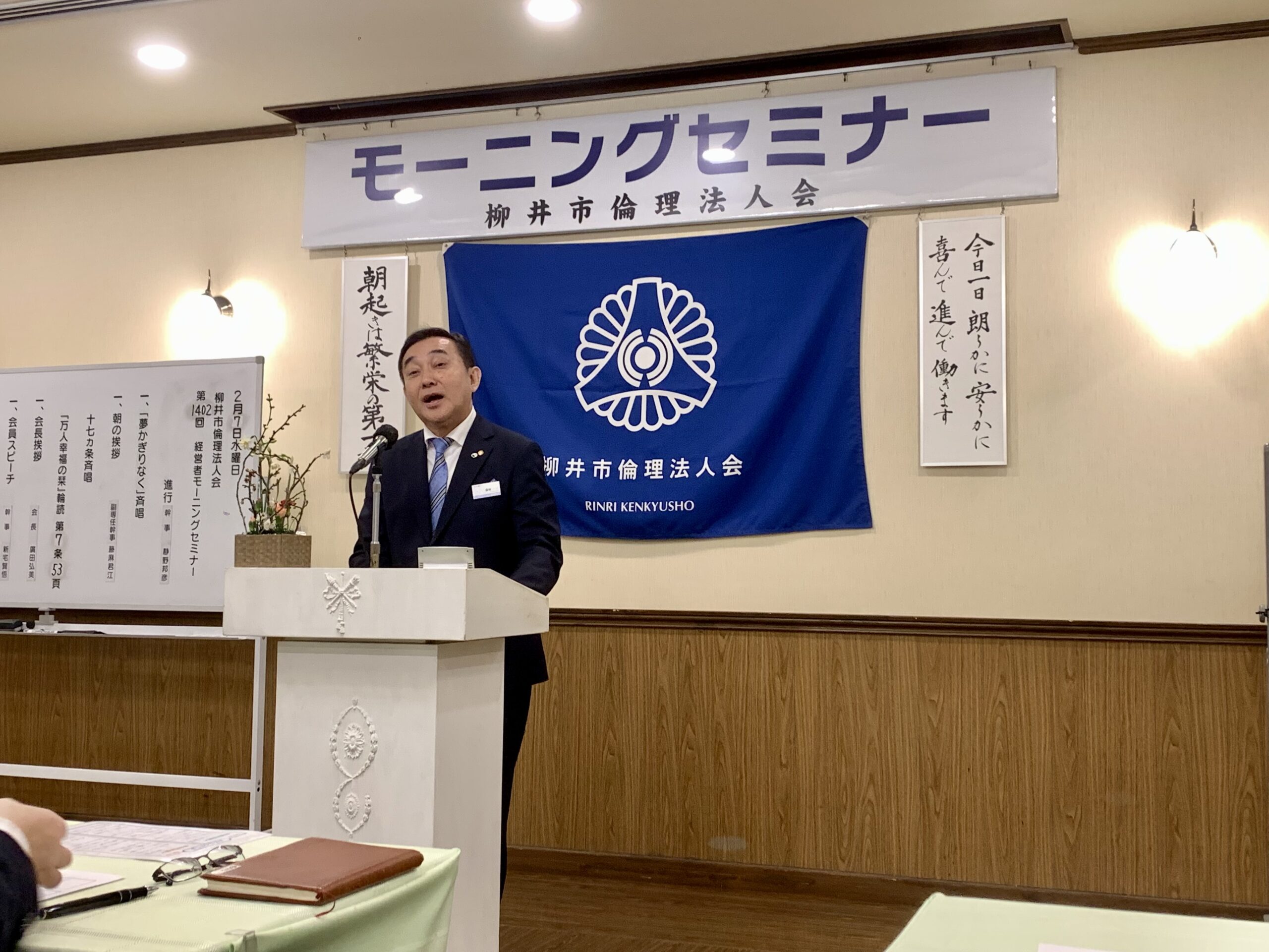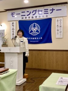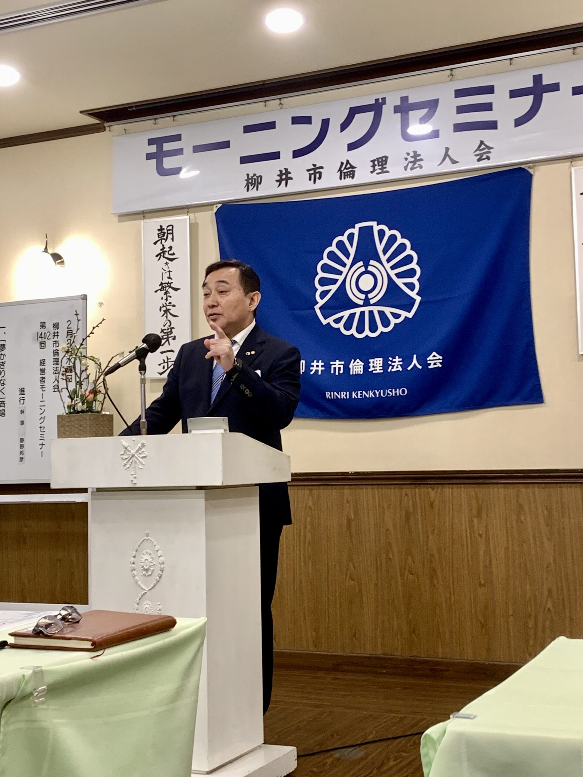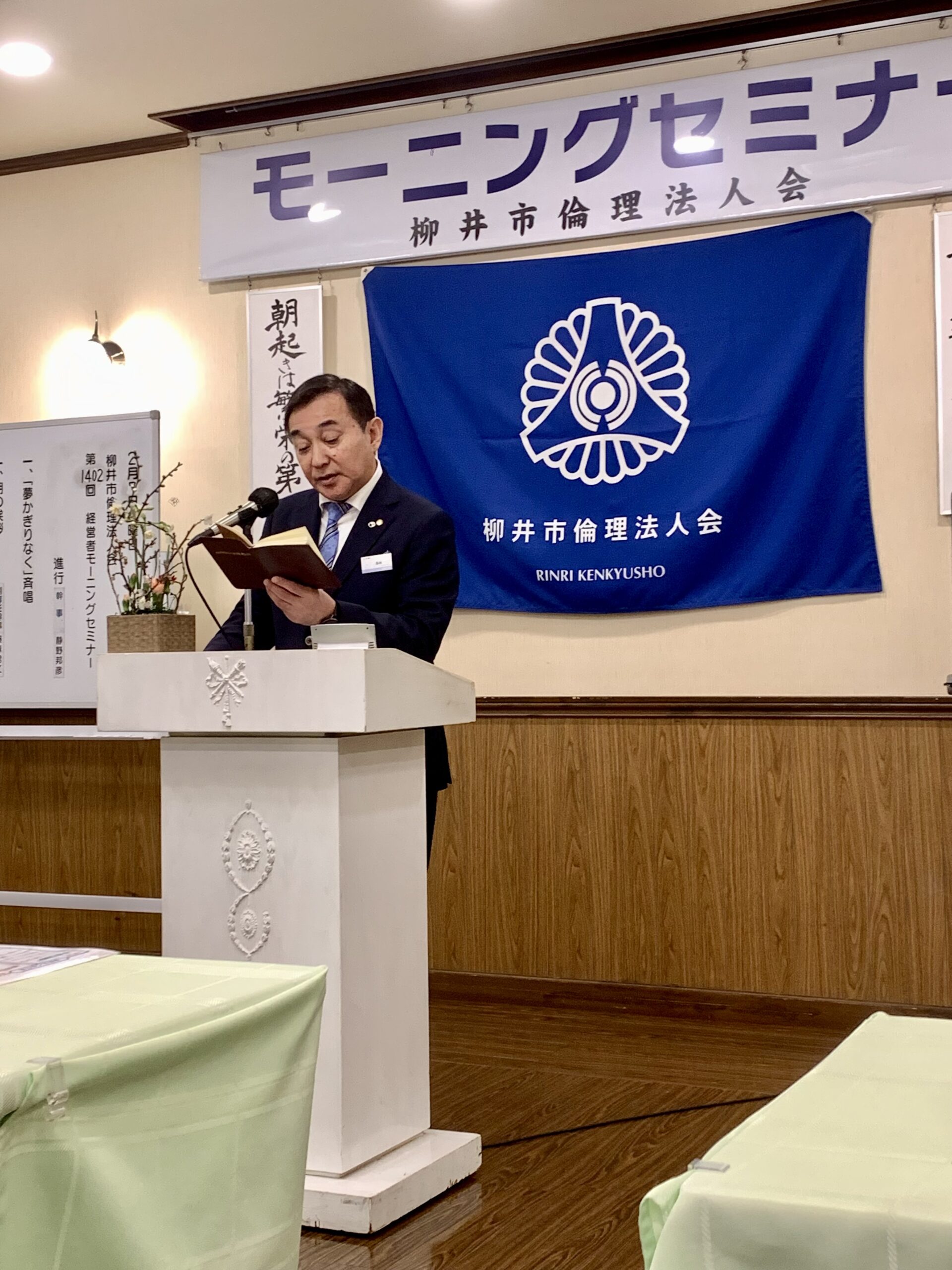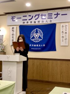 また我々が毎週モーニングセミナーで学ぶ意義も解説され、”倫理法人会の歌”に始まり、”誓いの言葉”までのひとつひとつに実践が込められており繰り返し学ぶ大切さを参加者に向けて発信されました。