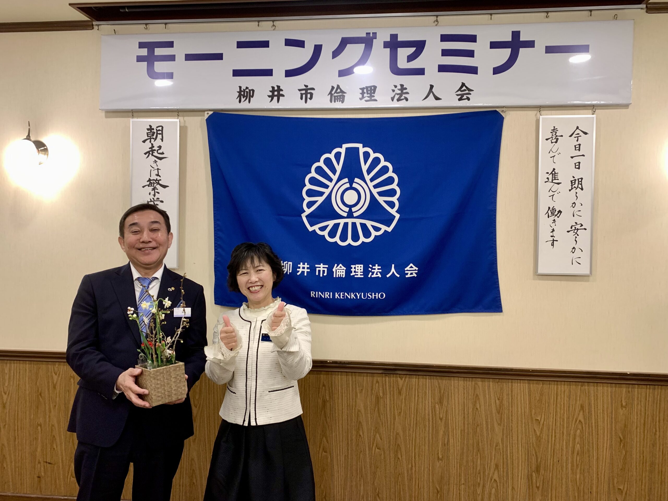 まさにいまの季節の花であることと、柳井市を代表する企業の社長でありながら、倫理法人会の顧問という役職をされている講師のイメージにぴったりということで選ばれたとのことでした。