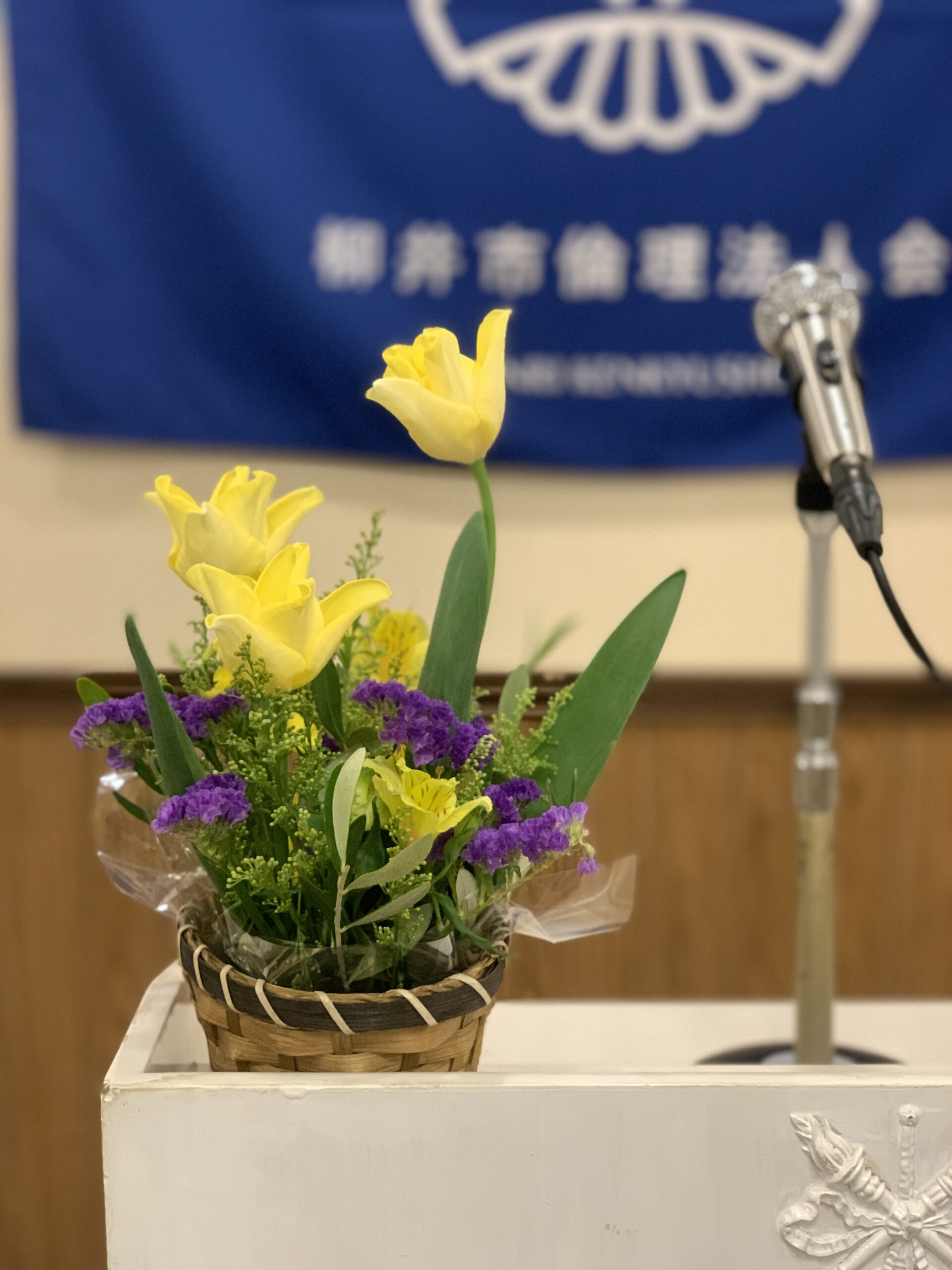 ”土台”である球根をしっかりすることにより人に対しての思いやりの心を持つことができると昨日の講演会での内容に重ねてお花の紹介をされました。
