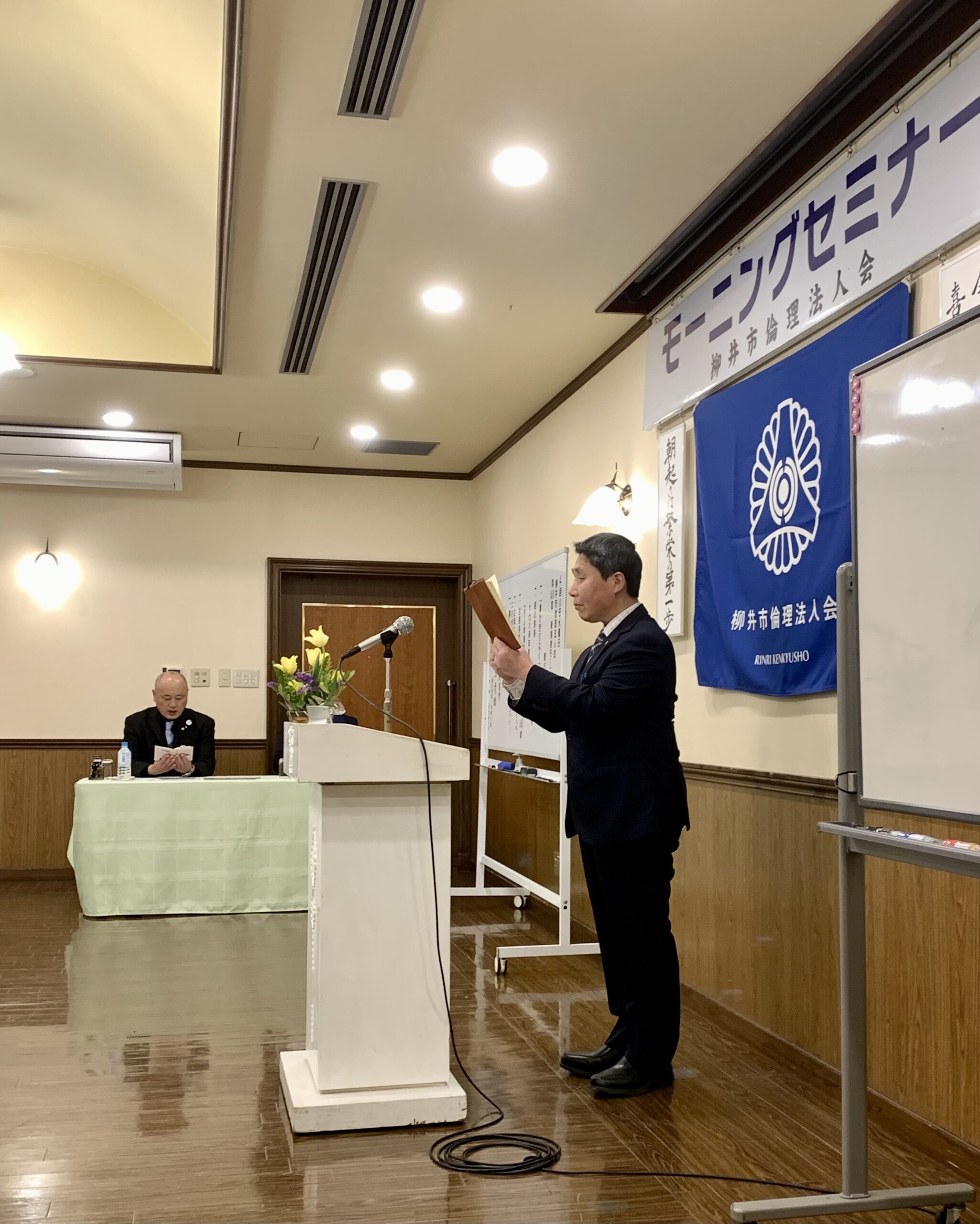 朝の挨拶:國本 豊 幹事 万人幸福の栞輪読 第15条「信成万事」