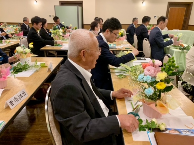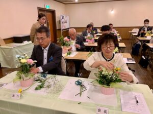 お花屋さんの一大イベントでもある「母の日」を乗り越えて講師として臨まれた田中副事務長、冒頭、藤麻会長から頂いたフラワーアーティストのニコライバーグマン氏の記事の思い出をお話され「誰か」を想う大切さを参加者に伝えられました。