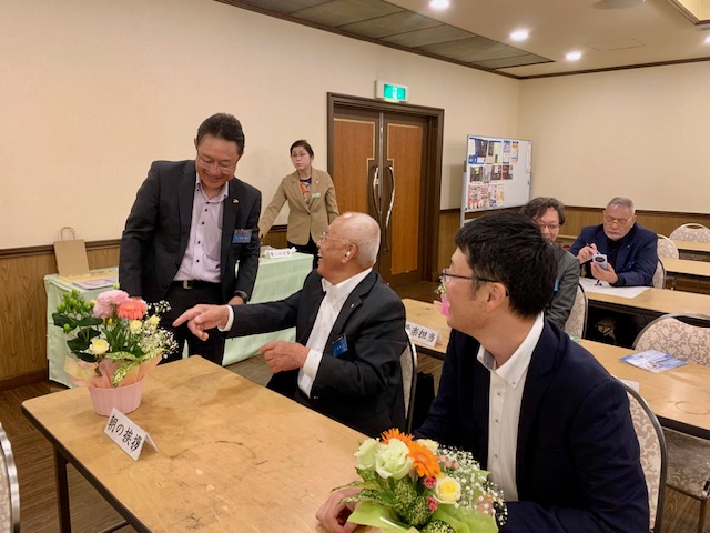 バラの栽培が趣味の小泉幹事、育てたバラを持参し会員スピーチに臨まれ、バラの色ごとの花言葉やキレイに咲かせるためのコツをお話されました。