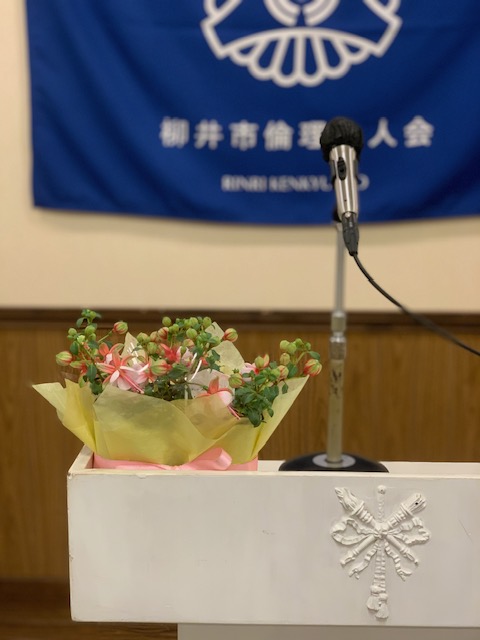 今週のお花は”フクシア”で花言葉は「信じる愛」で倫理を信じてここまで来られた髙屋幹事を想って選ばれたとのことでした。