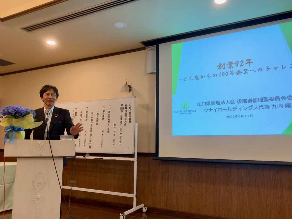 2024年6月12日(水) 第1419回MS 講師:山口県倫理法人会 後継者倫理塾 委員長 株式会社 九内 代表取締役 九内庸志 氏