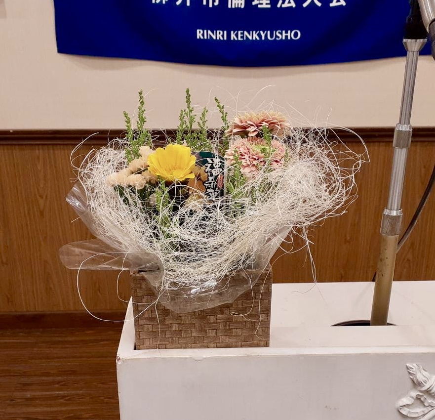 会員スピーチは、高屋正幹事。お孫さんの結婚報告等、本日のお花の花言葉にピッタリのお話に、会場は温かく包まれました。